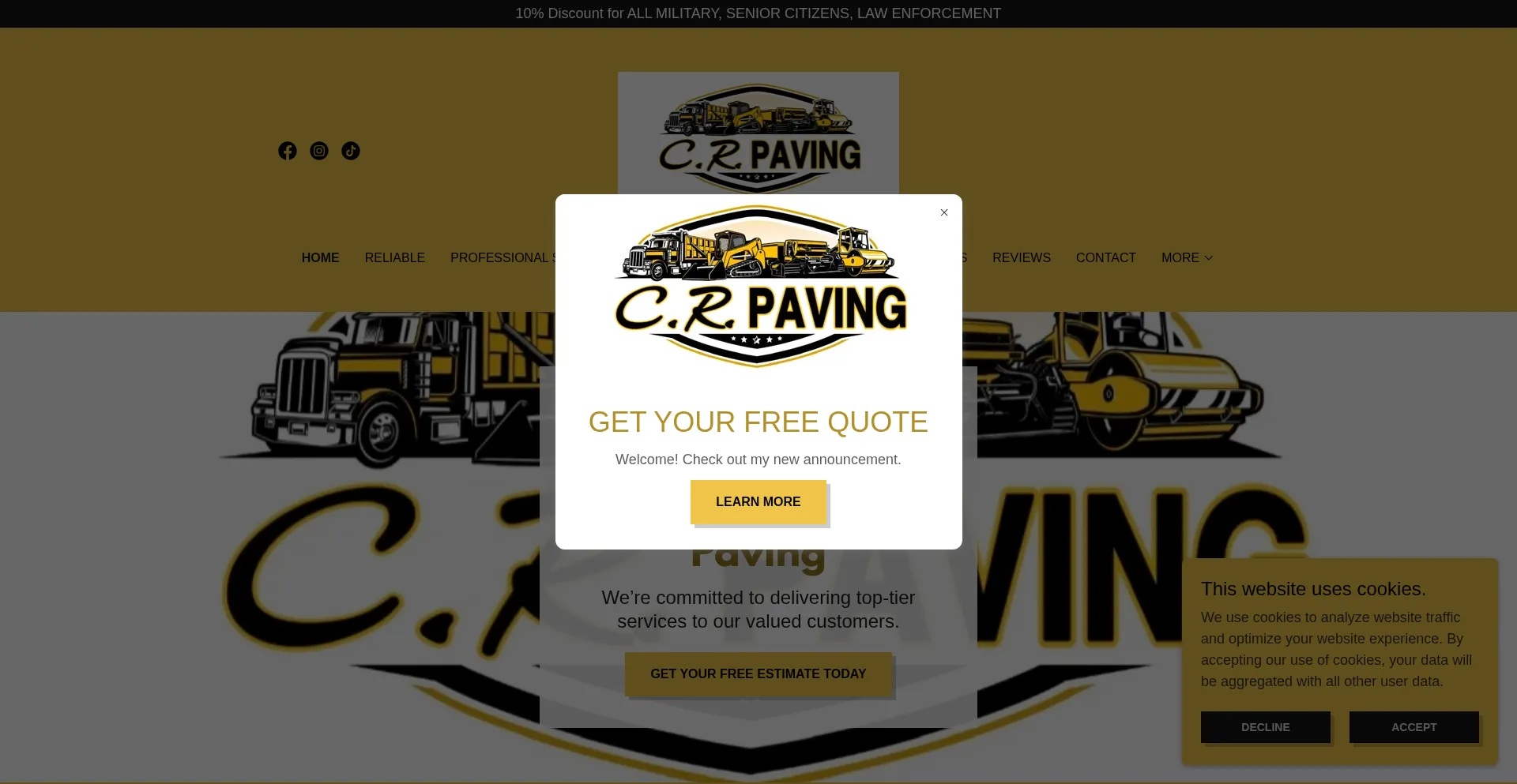 The website implements cookie consent mechanisms in compliance with privacy regulations such as GDPR or CCPA. This demonstrates that crpavingpro.com adheres to data protection standards and provides users with control over personal data collection practices.