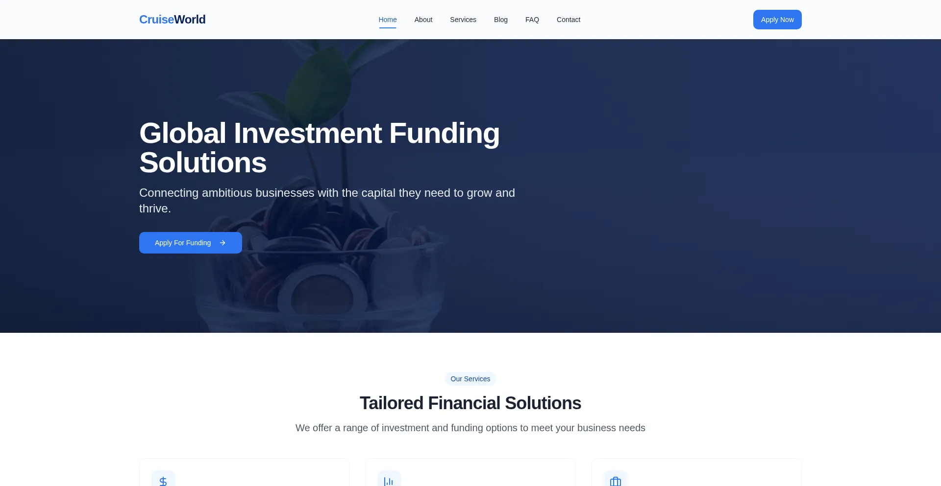 The cruiseworldinterltd.com website provides financial services including investment management, wealth advisory, or financial planning solutions. Services may encompass portfolio management, investment opportunities, financial consulting, or asset growth strategies for individual and institutional clients.