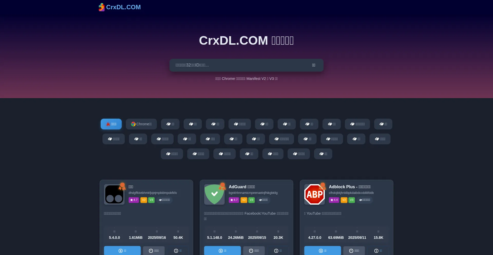免费下载Chrome插件扩展程序,支持Manifest V2和V3版本,提供丰富的插件分类和搜索功能