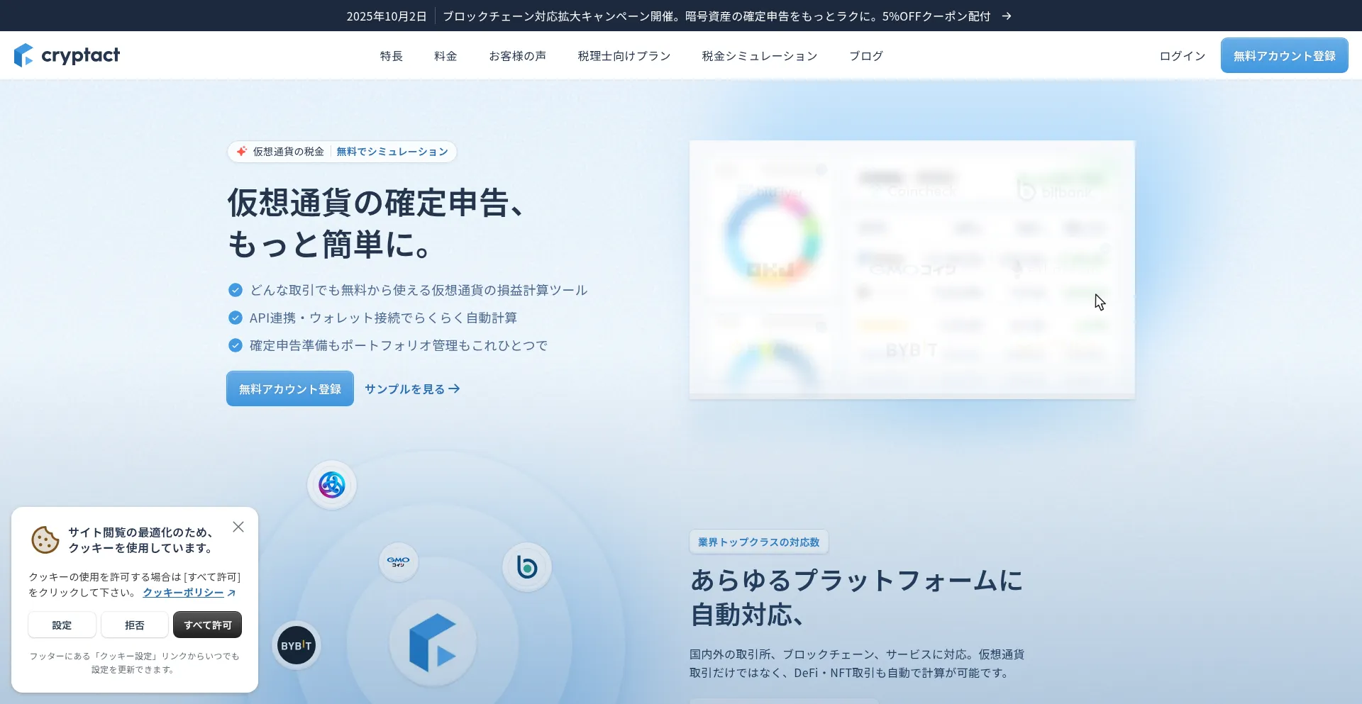 クリプタクトは仮想通貨(暗号資産)の損益計算ツール。無料で国内外の取引所、DeFi、NFTも自動で計算できます。税金や確定申告�...