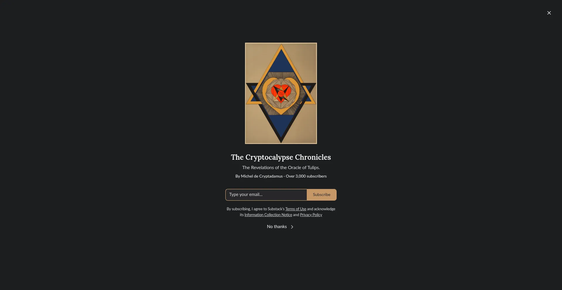The Revelations of the Oracle of Tulips. Click to read The Cryptocalypse Chronicles, by Michel de Cryptadamus, a Substack publication with thousands of subscribers.