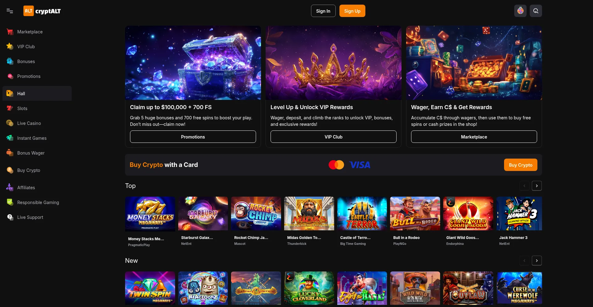 Win up to $100,000 + 700FS in Bonuses at CRYPTALT Crypto Casino