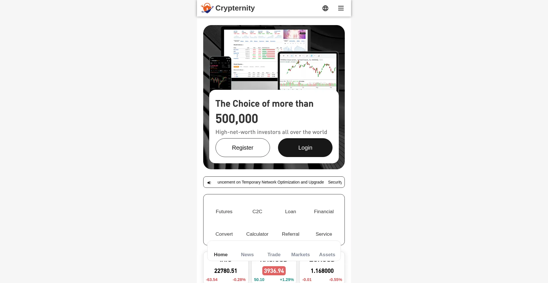 The crypternity.top website provides financial services including investment management, wealth advisory, or financial planning solutions. Services may encompass portfolio management, investment opportunities, financial consulting, or asset growth strategies for individual and institutional clients.