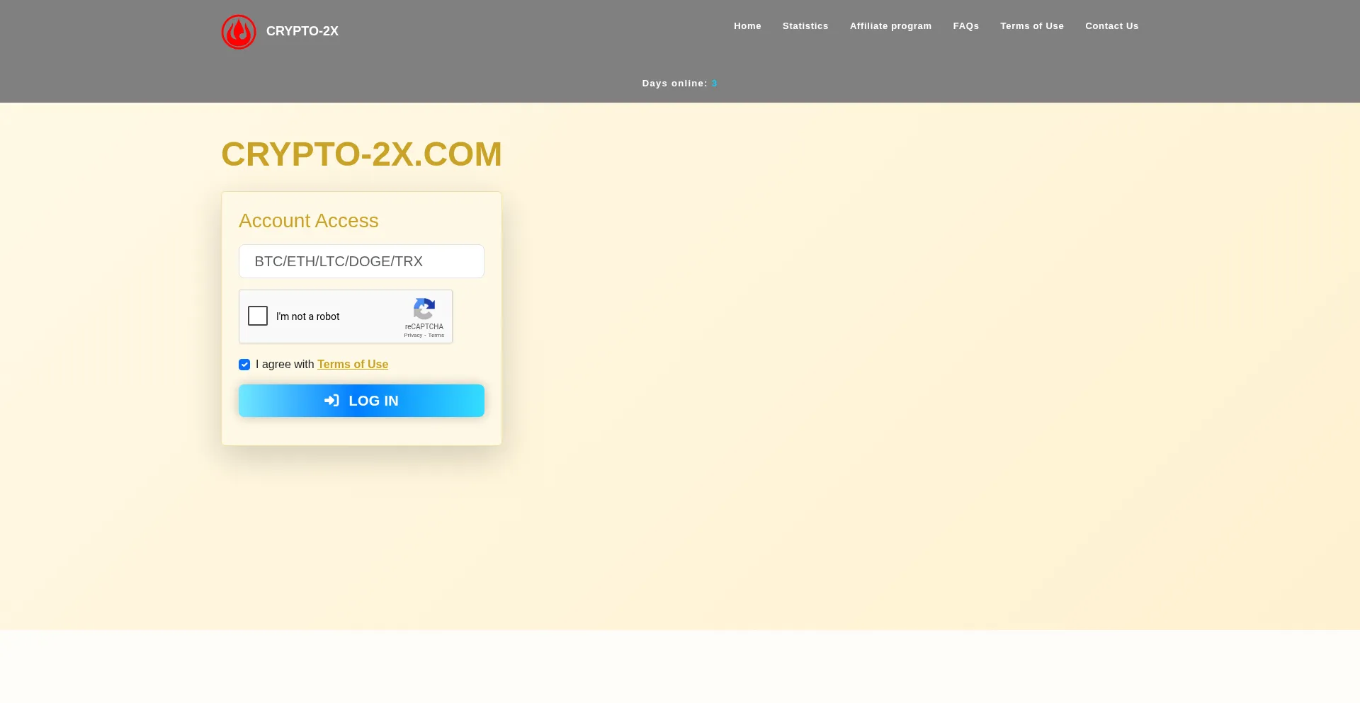 The crypto-2x.com website references cryptocurrency transactions or educational content related to digital assets such as Bitcoin, Ethereum, or other blockchain-based currencies. Users should exercise caution as cryptocurrency transactions are irreversible and the decentralized nature of these assets provides limited recourse for fraudulent activities.