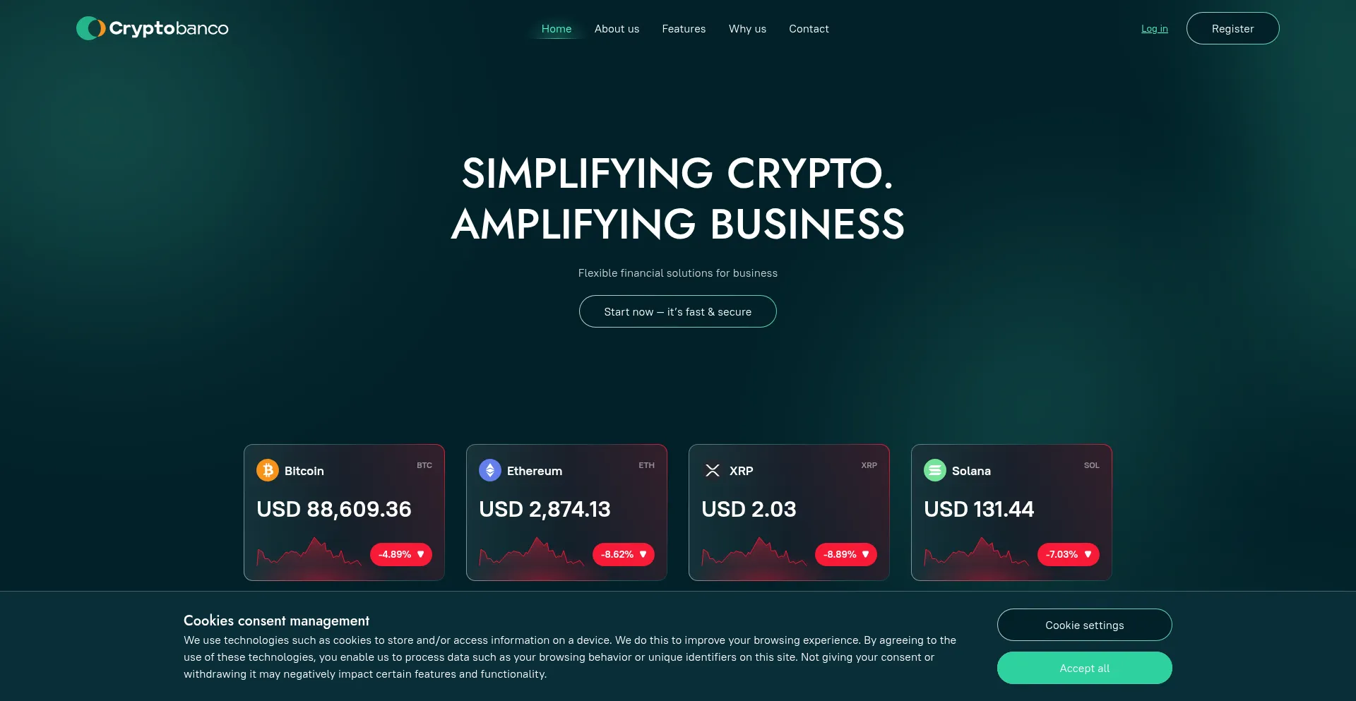 The website implements cookie consent mechanisms in compliance with privacy regulations such as GDPR or CCPA. This demonstrates that cryptobanco.com adheres to data protection standards and provides users with control over personal data collection practices.