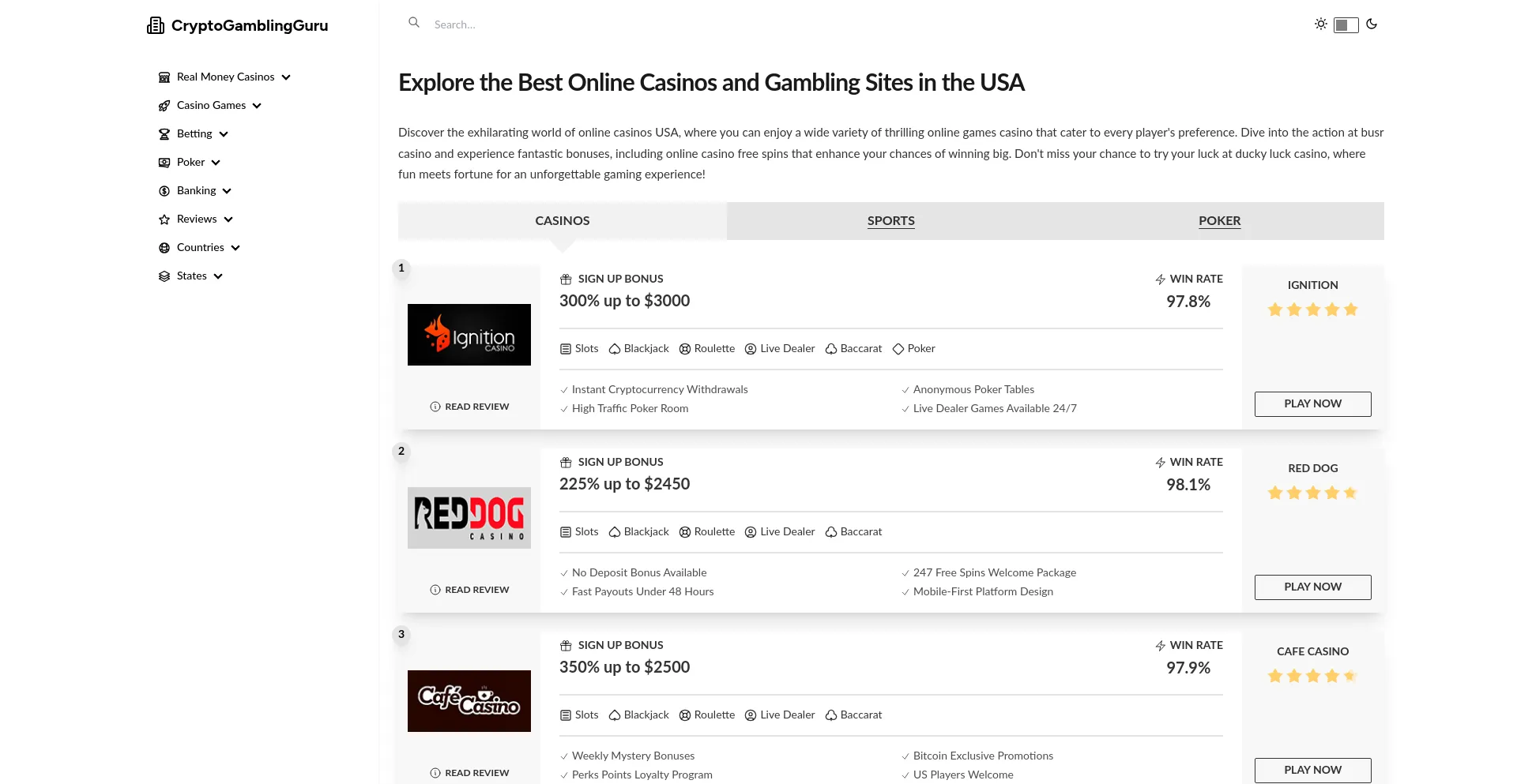 Explore the best US online casinos and gambling sites! Discover top games, bonuses, and safe betting options for an exciting gaming experience.