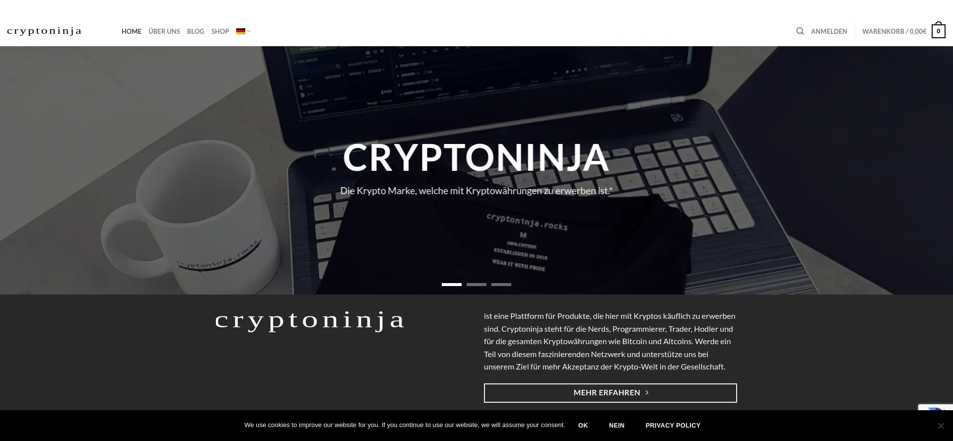 Analysis indicates that cryptoninja.rocks operates as an e-commerce platform facilitating online transactions for goods or services. The website implements shopping cart functionality, payment processing systems, and product catalog features typical of commercial retail operations.