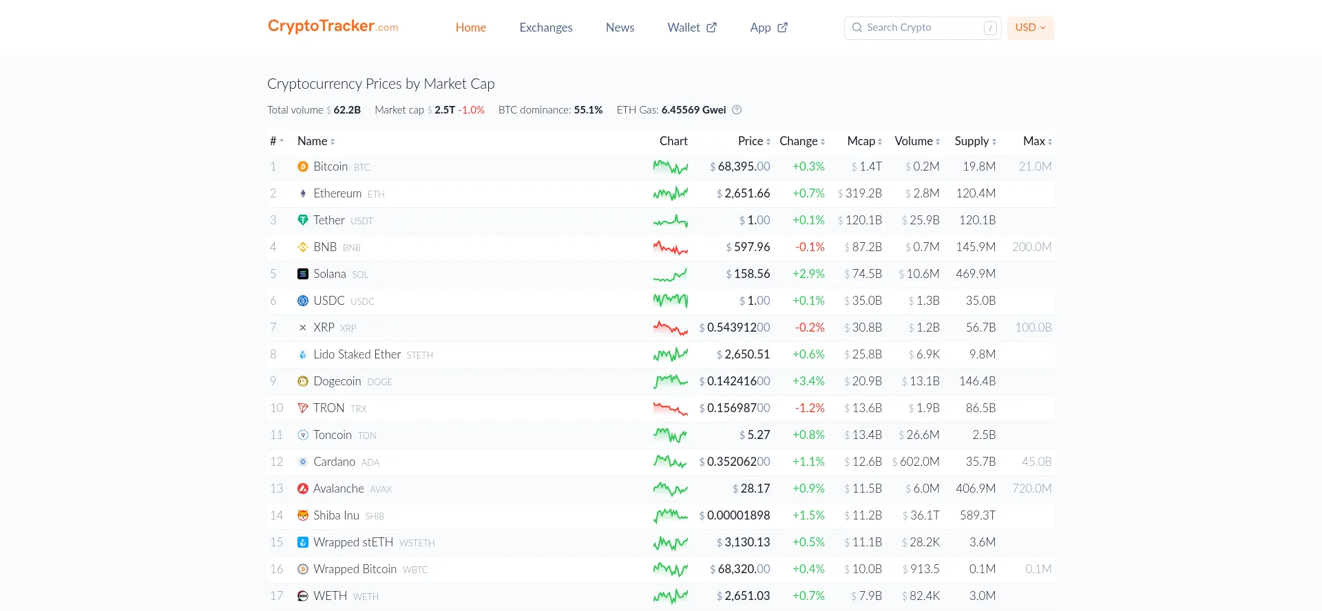 Explore top crypto prices in real-time. Live charts, market cap and currency converter. View Bitcoin, Ethereum, Dogecoin XRP, and others.