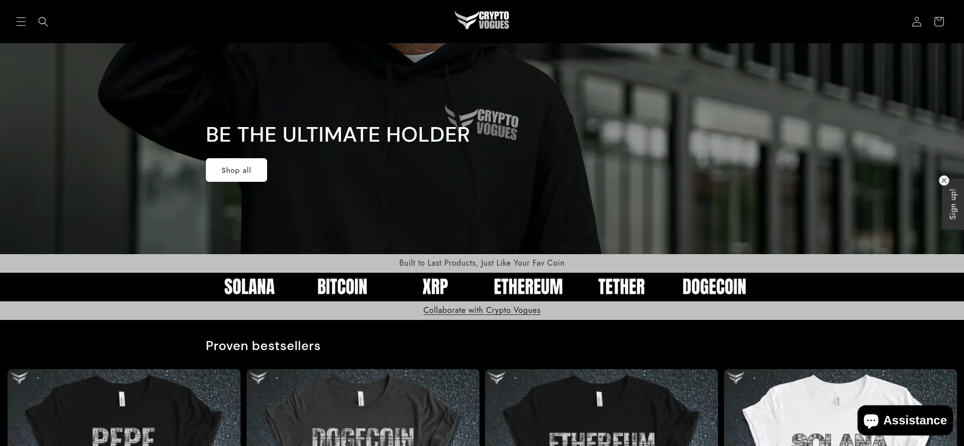 Our analyzer determines that website cryptovogues.com is using Shopify CMS. Shopify is a popular e-commerce platform, powering around 4.4% of websites globally.