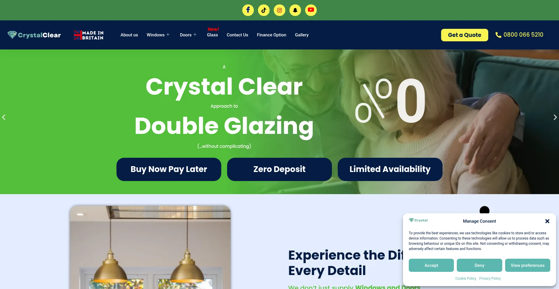 The website implements cookie consent mechanisms in compliance with privacy regulations such as GDPR or CCPA. This demonstrates that crystalclearglass.co.uk adheres to data protection standards and provides users with control over personal data collection practices.