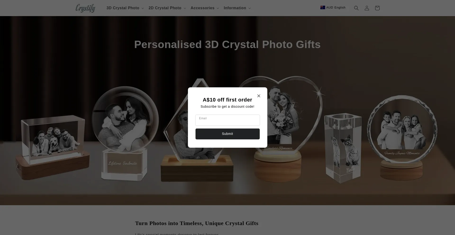 Custom 3D crystal photo keepsakes and engraved awards. Personalised gift ideas and trophies for birthdays, anniversaries, weddings, corporate events and more.