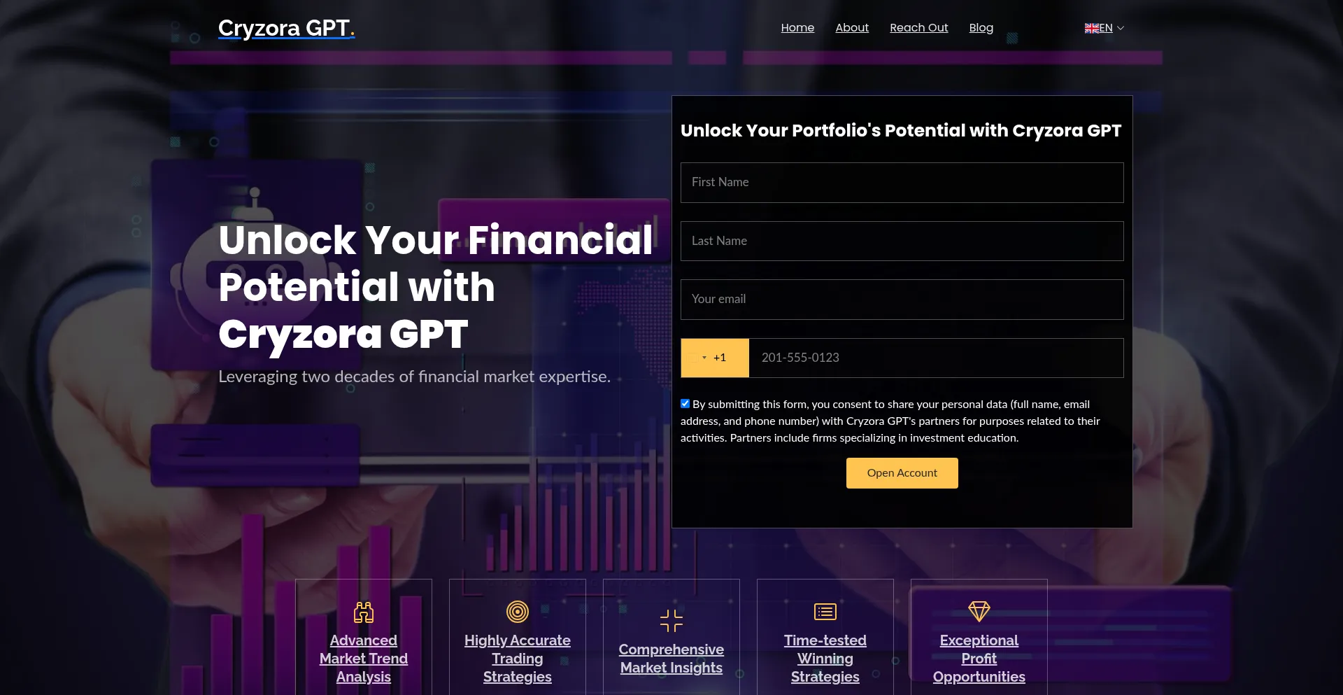 The cryzora-gpt.com website provides financial services including investment management, wealth advisory, or financial planning solutions. Services may encompass portfolio management, investment opportunities, financial consulting, or asset growth strategies for individual and institutional clients.