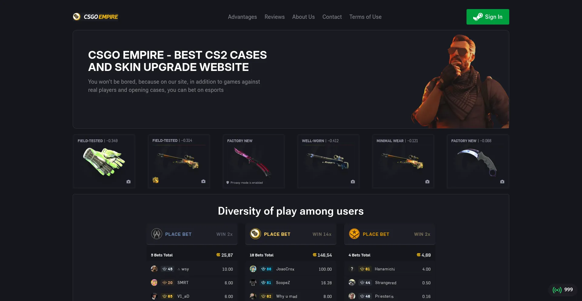 CSGO EMPIRE - Open CS2, CS:GO cases with instant withdrawal of items to your Steam account!