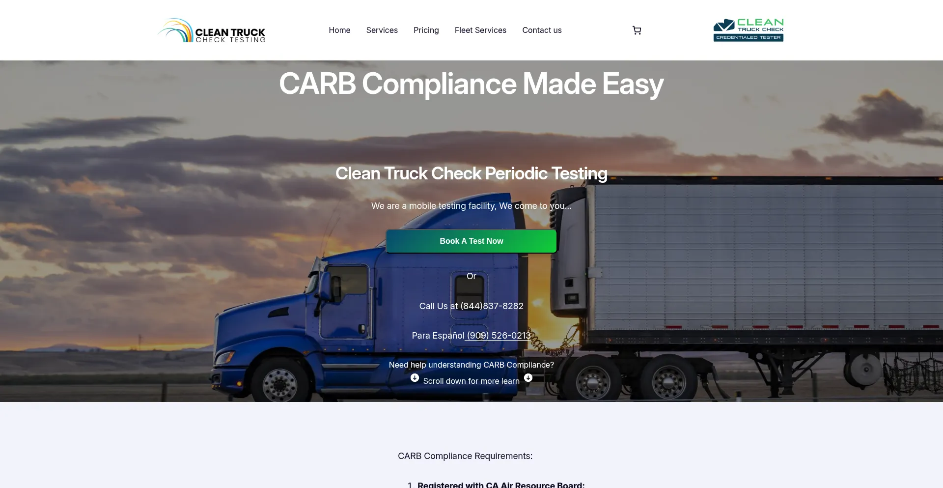 Mobile CARB compliance testing for heavy-duty vehicles by certified technicians. Pre-Clean Truck Check Testing, free retests & fast service.