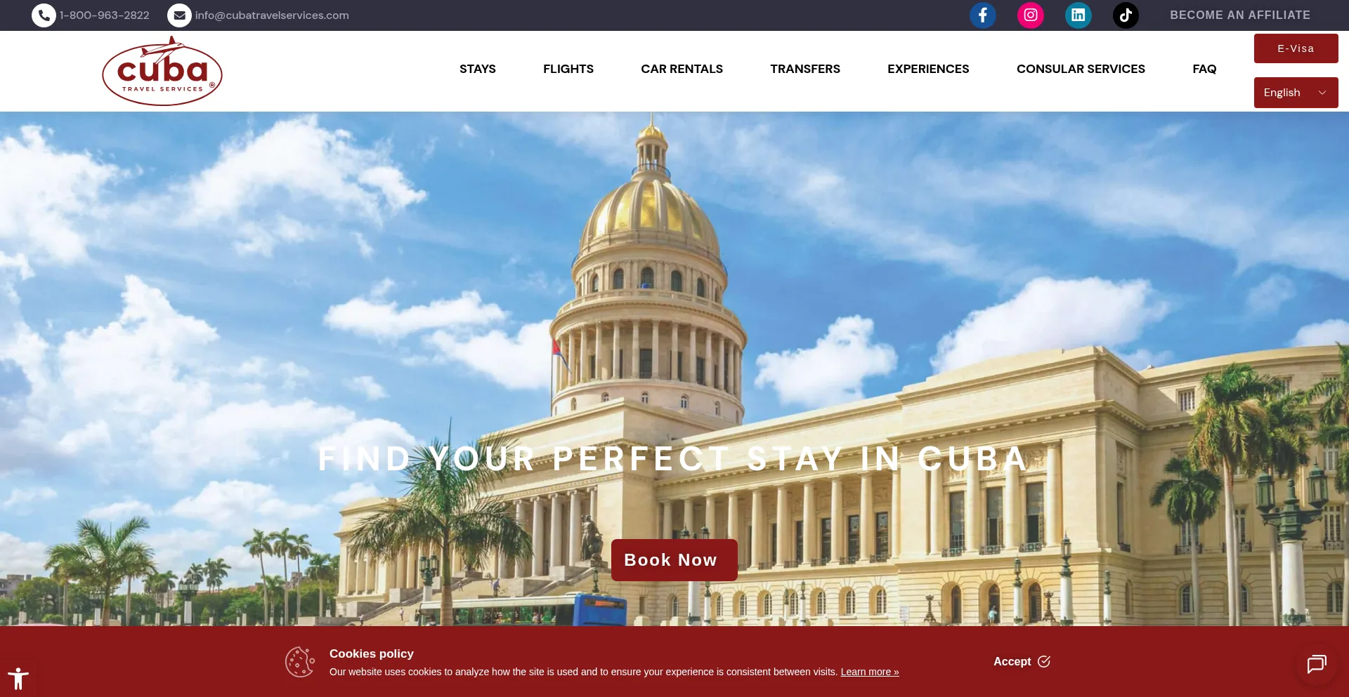 Our analyzer determines that website cubatravelservices.com is using WordPress CMS. WordPress is the most popular content management system, powering over 43% of websites globally.