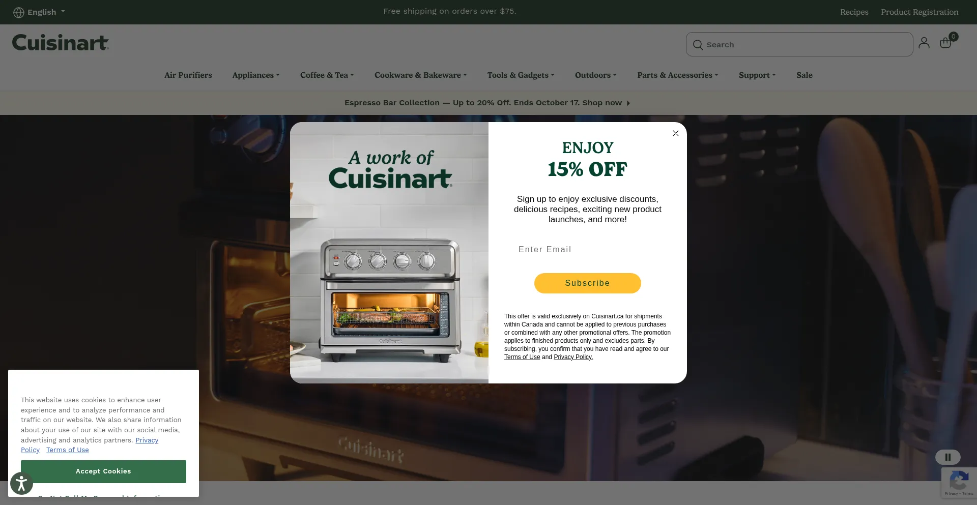 The website implements cookie consent mechanisms in compliance with privacy regulations such as GDPR or CCPA. This demonstrates that cuisinart.ca adheres to data protection standards and provides users with control over personal data collection practices.