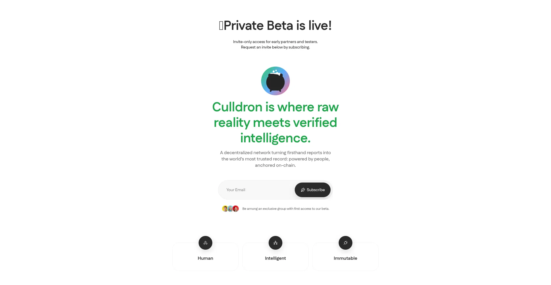 Culldron is a decentralized news network that transforms firsthand reports into verified intelligence. Powered by people, synthesized by AI, and anchored on-chain.