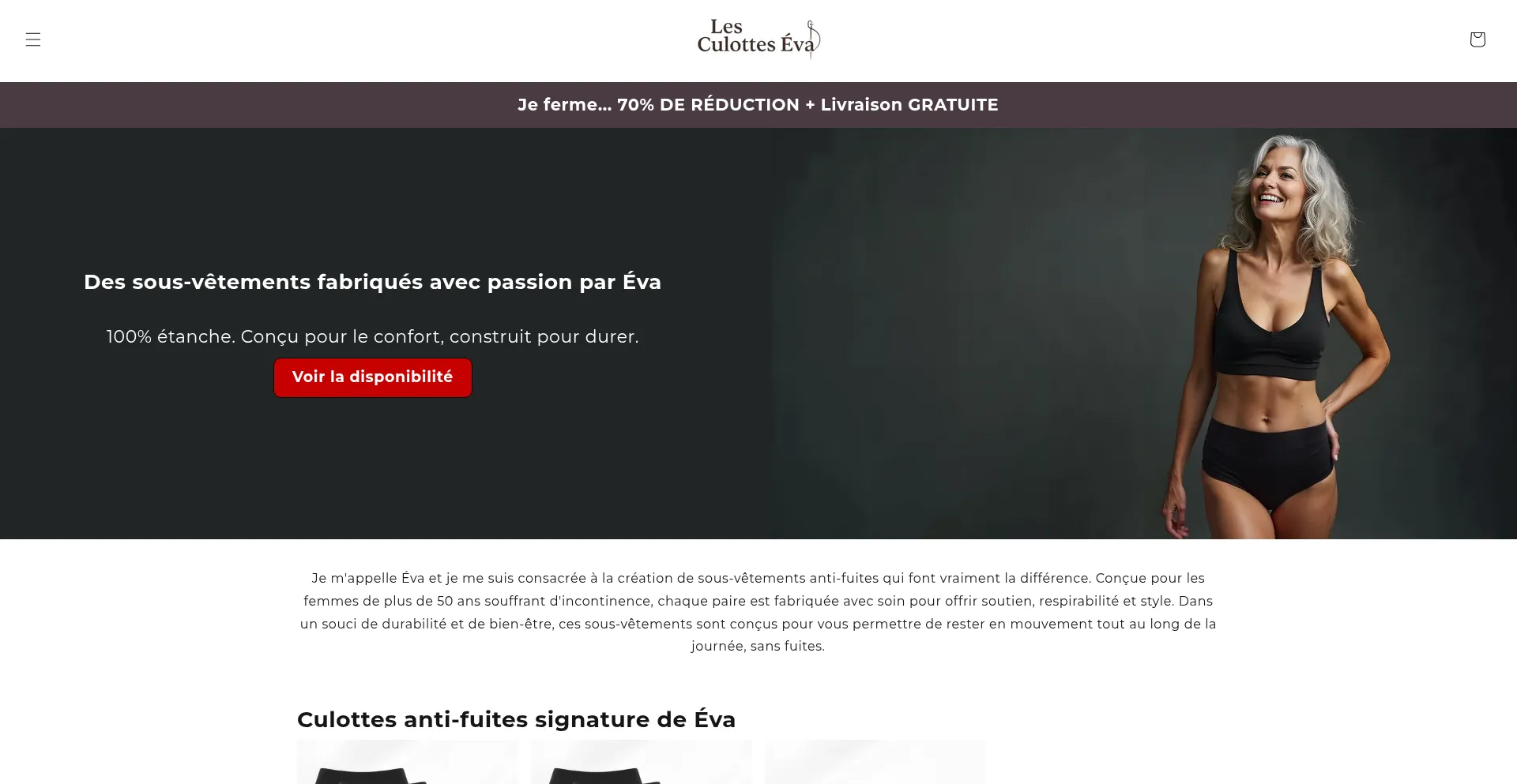 Analysis indicates that culotte-eva.ca operates as an e-commerce platform facilitating online transactions for goods or services. The website implements shopping cart functionality, payment processing systems, and product catalog features typical of commercial retail operations.