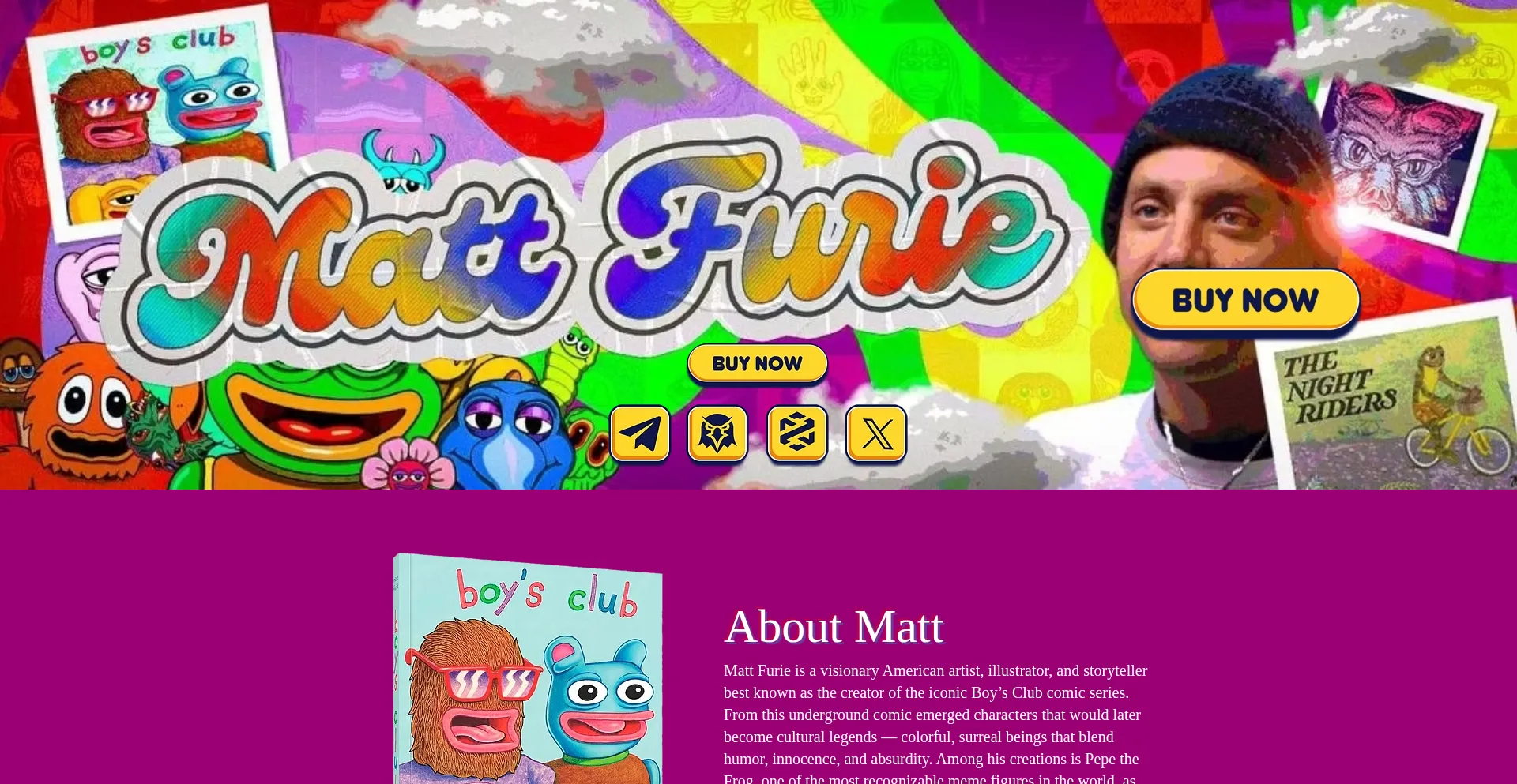 Matt Furie is a visionary American artist, illustrator, and storyteller best known as the creator of the iconic Boy’s Club comic series.