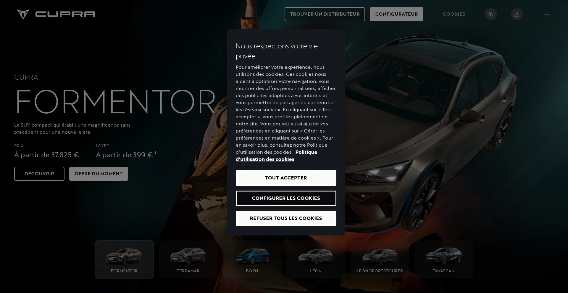The website implements cookie consent mechanisms in compliance with privacy regulations such as GDPR or CCPA. This demonstrates that cupraofficial.fr adheres to data protection standards and provides users with control over personal data collection practices.