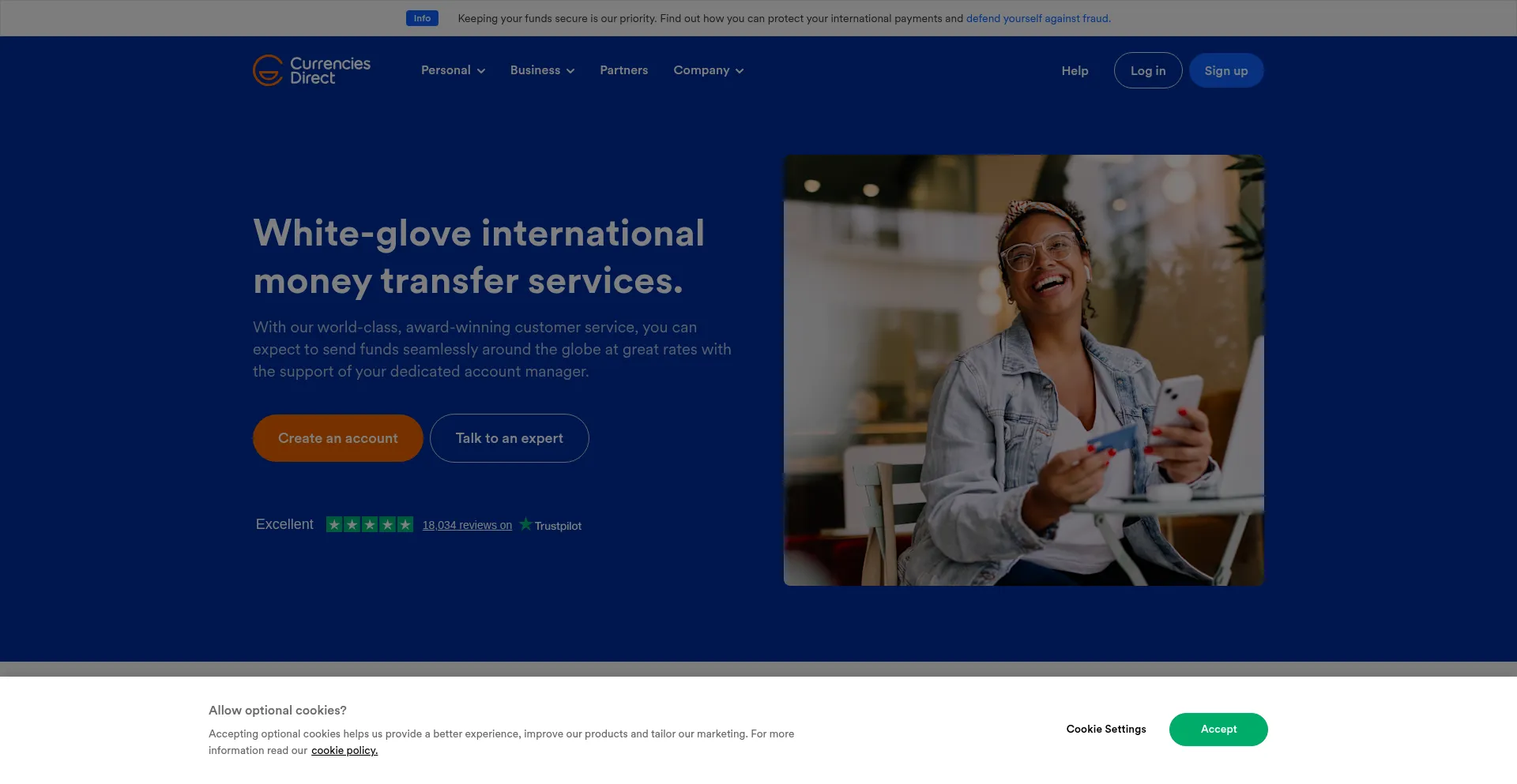 The website implements cookie consent mechanisms in compliance with privacy regulations such as GDPR or CCPA. This demonstrates that currenciesdirect.com adheres to data protection standards and provides users with control over personal data collection practices.