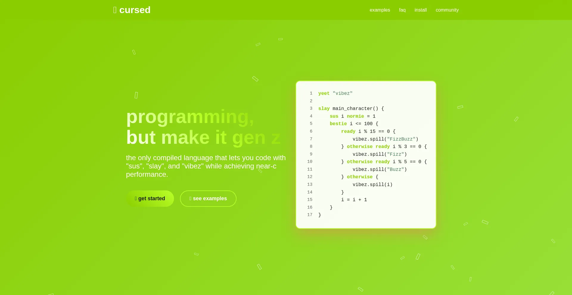 the only compiled language that lets you code with "sus", "slay", and "vibez" while achieving near-c performance.