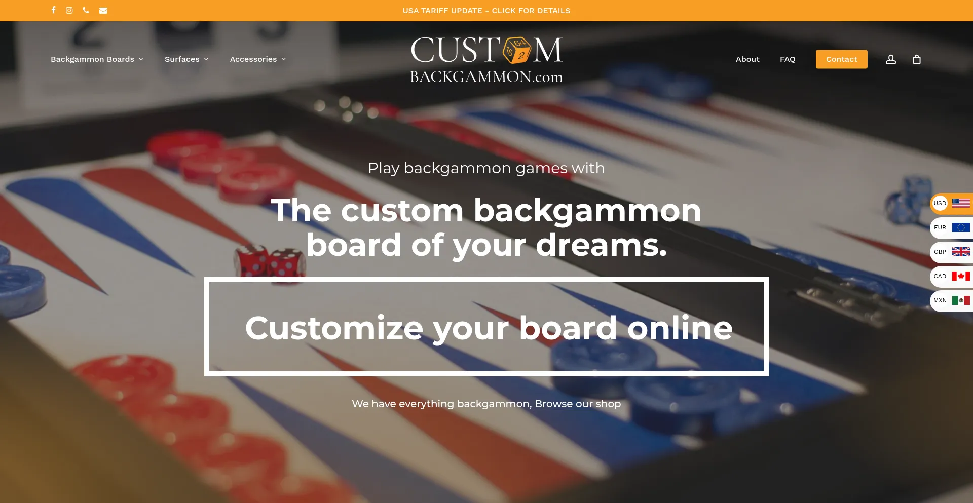 Custom backgammon boards that are only limited by your imagination. Fully customize your board with your own colors, logo & branding online.