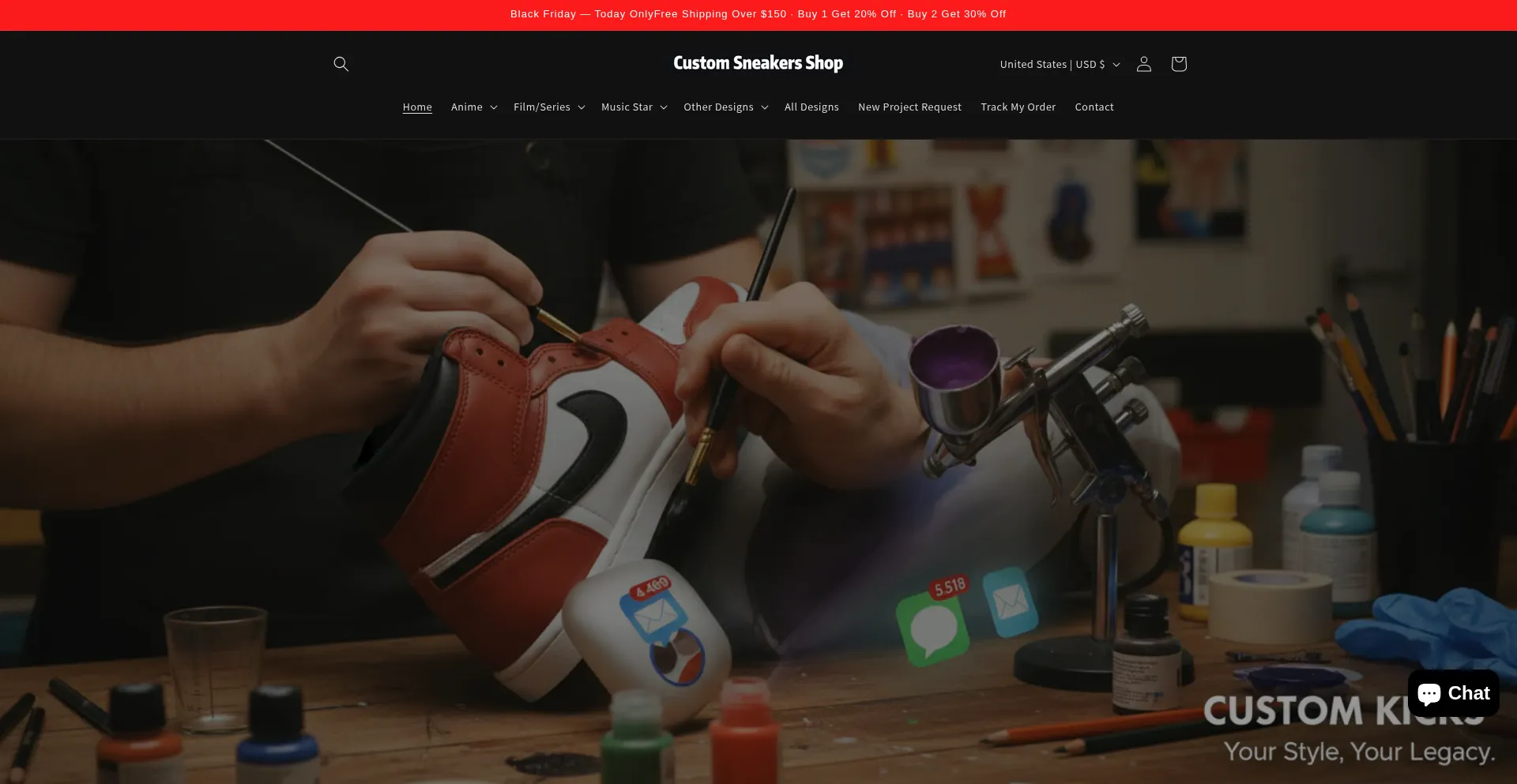 Our analyzer determines that website customsneakers.shop is using Shopify CMS. Shopify is a popular e-commerce platform, powering around 4.4% of websites globally.