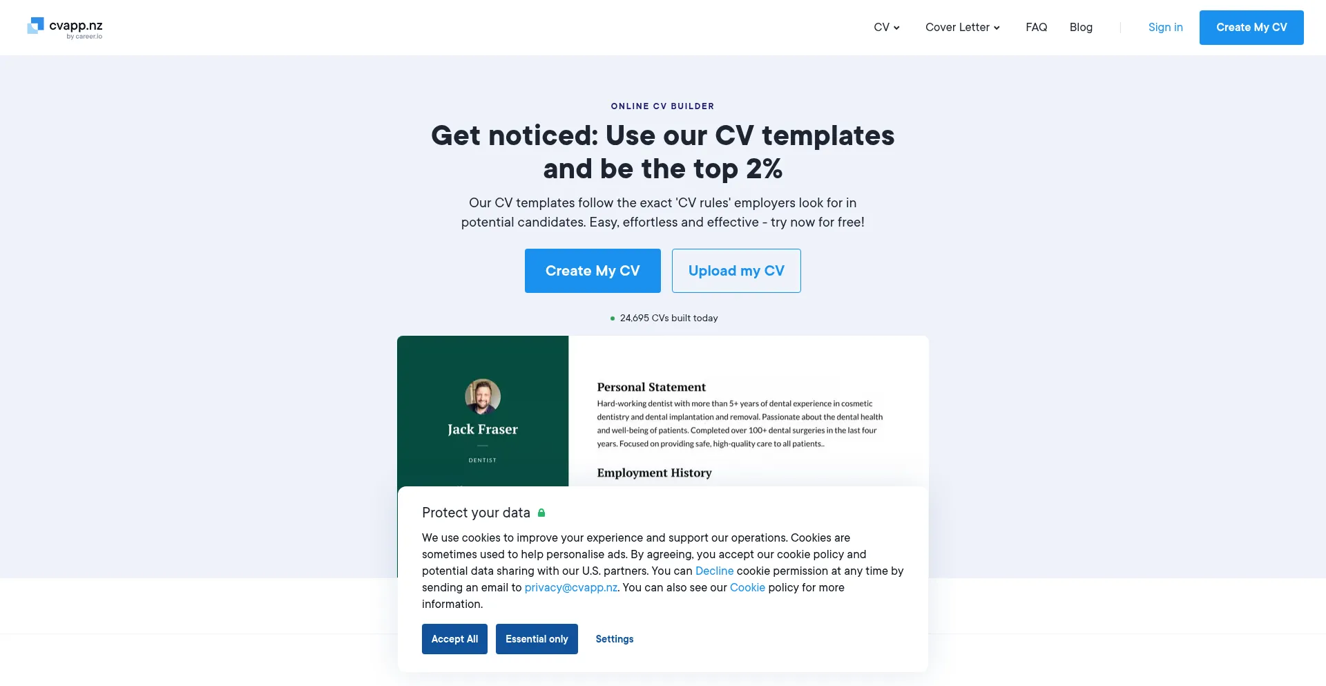 The website implements cookie consent mechanisms in compliance with privacy regulations such as GDPR or CCPA. This demonstrates that cvapp.nz adheres to data protection standards and provides users with control over personal data collection practices.