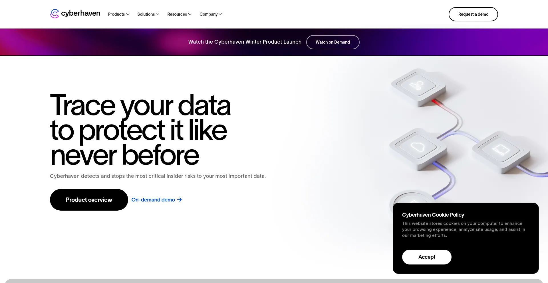 We scanned cyberhaven.com and found it to be legitimate. Our analysis shows a high trust score of 100/100, indicating this website appears to be very safe to use.