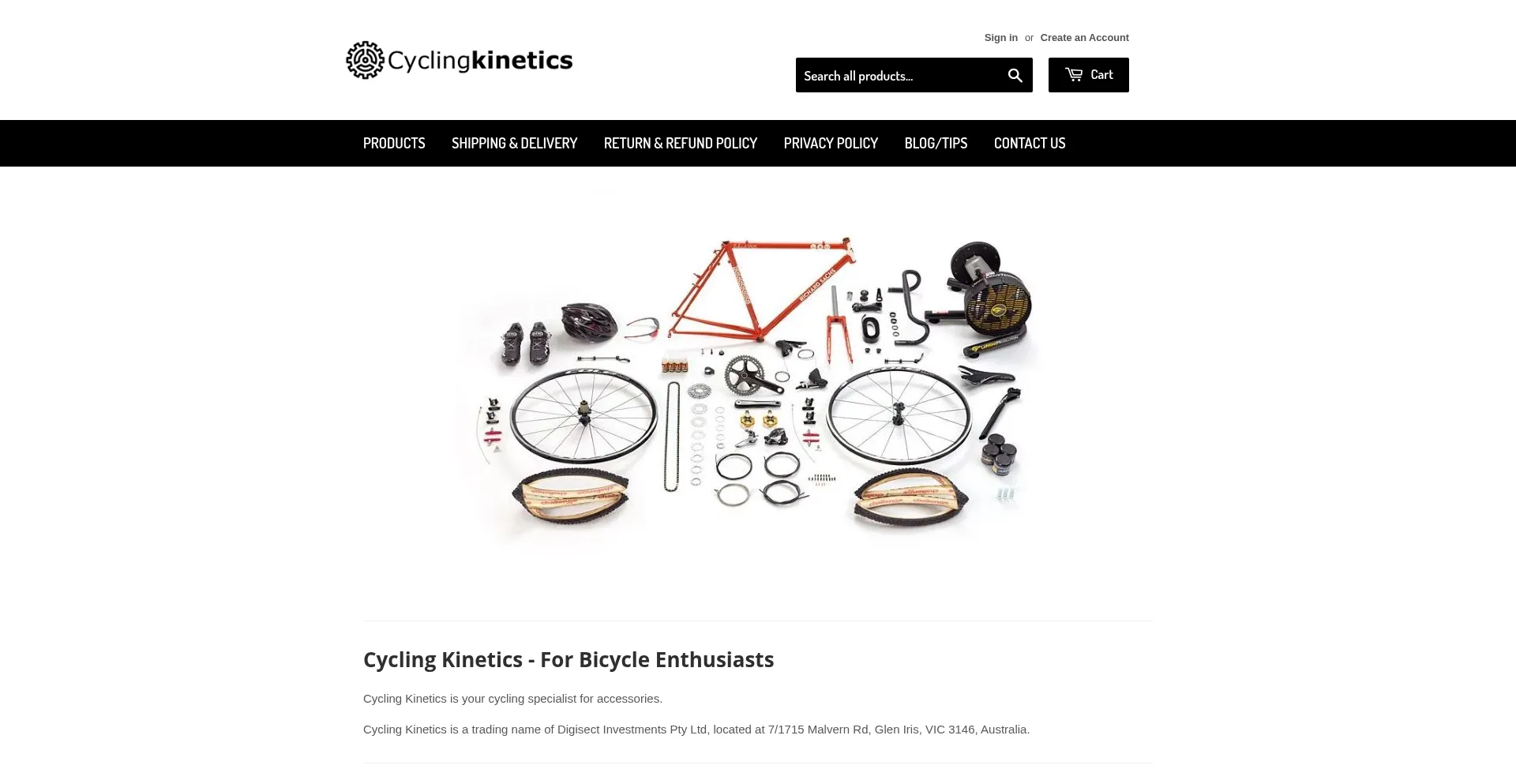 Analysis indicates that cyclingkinetics.com operates as an e-commerce platform facilitating online transactions for goods or services. The website implements shopping cart functionality, payment processing systems, and product catalog features typical of commercial retail operations.