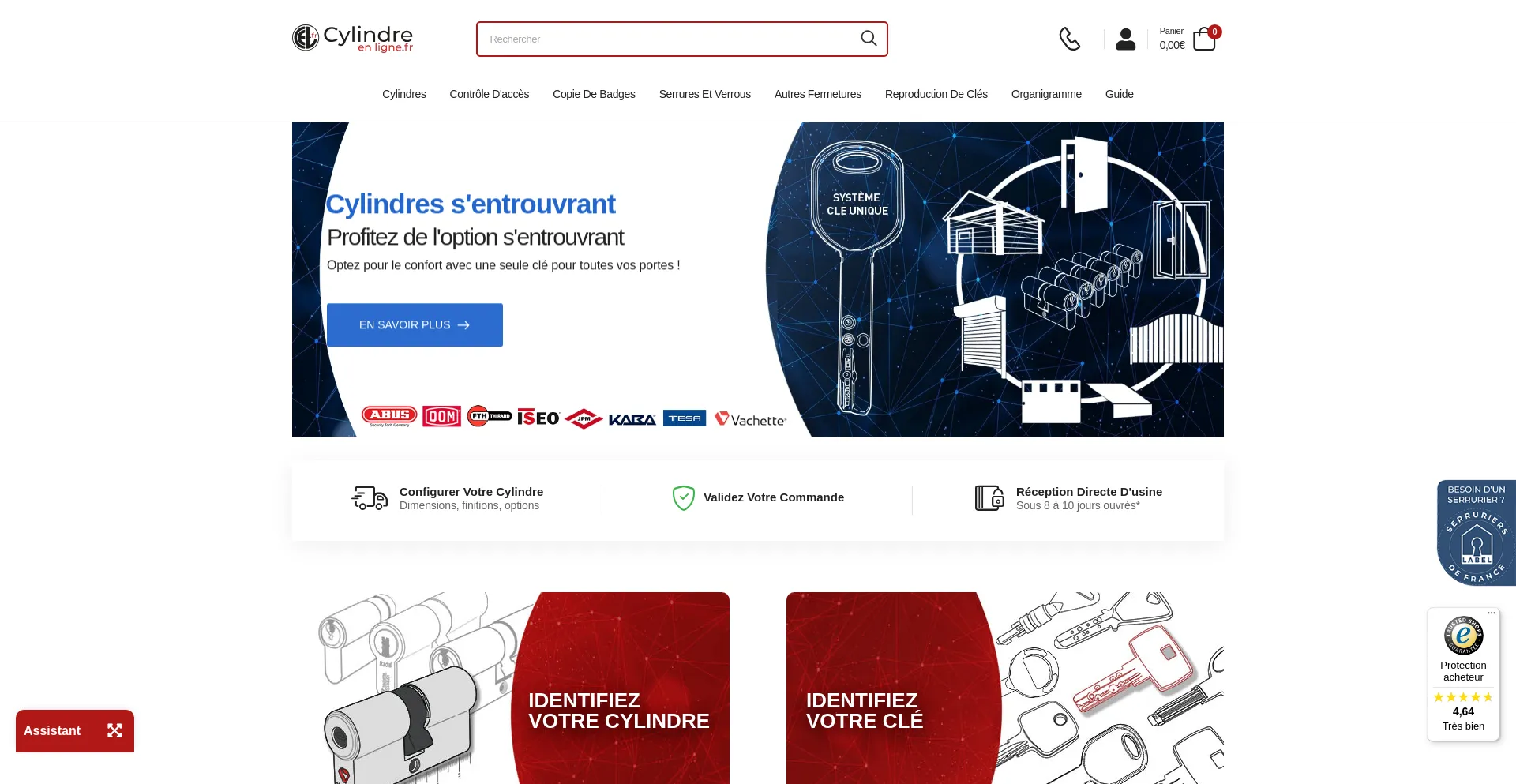 Cylindre-en-Ligne.fr : Cylindres de porte, Serrures, Doubles de clés