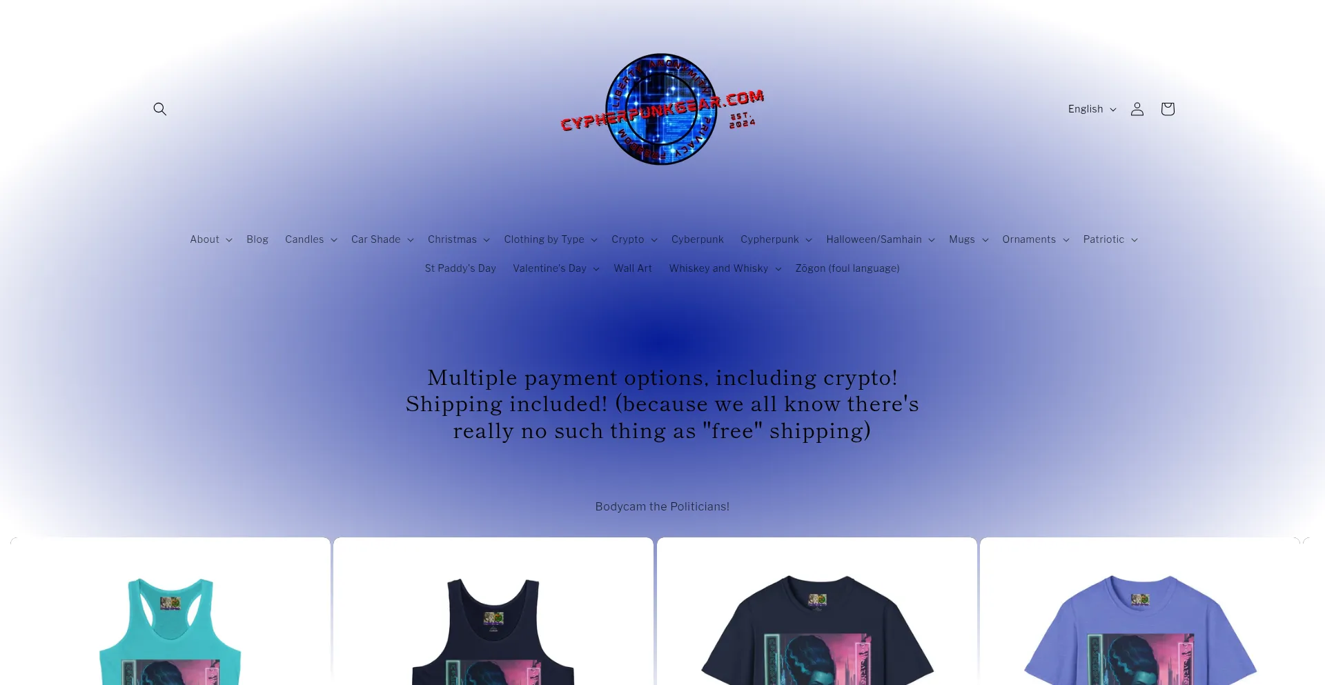 Shop cypherpunkgear.com for crypto, patriotic, whisky, and whiskey, related products like t-shirts, tank tops and coffee mugs for the cypherpunk in you.