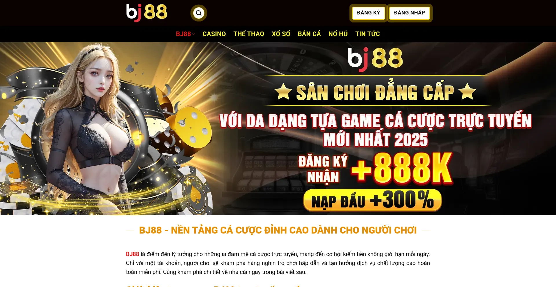 Tham gia chơi tại sảnh game BJ88 để được trải nghiệm cá cược đỉnh cao, đa dạng trò chơi cùng nhiều cơ hội thắng lớn mỗi ngày.