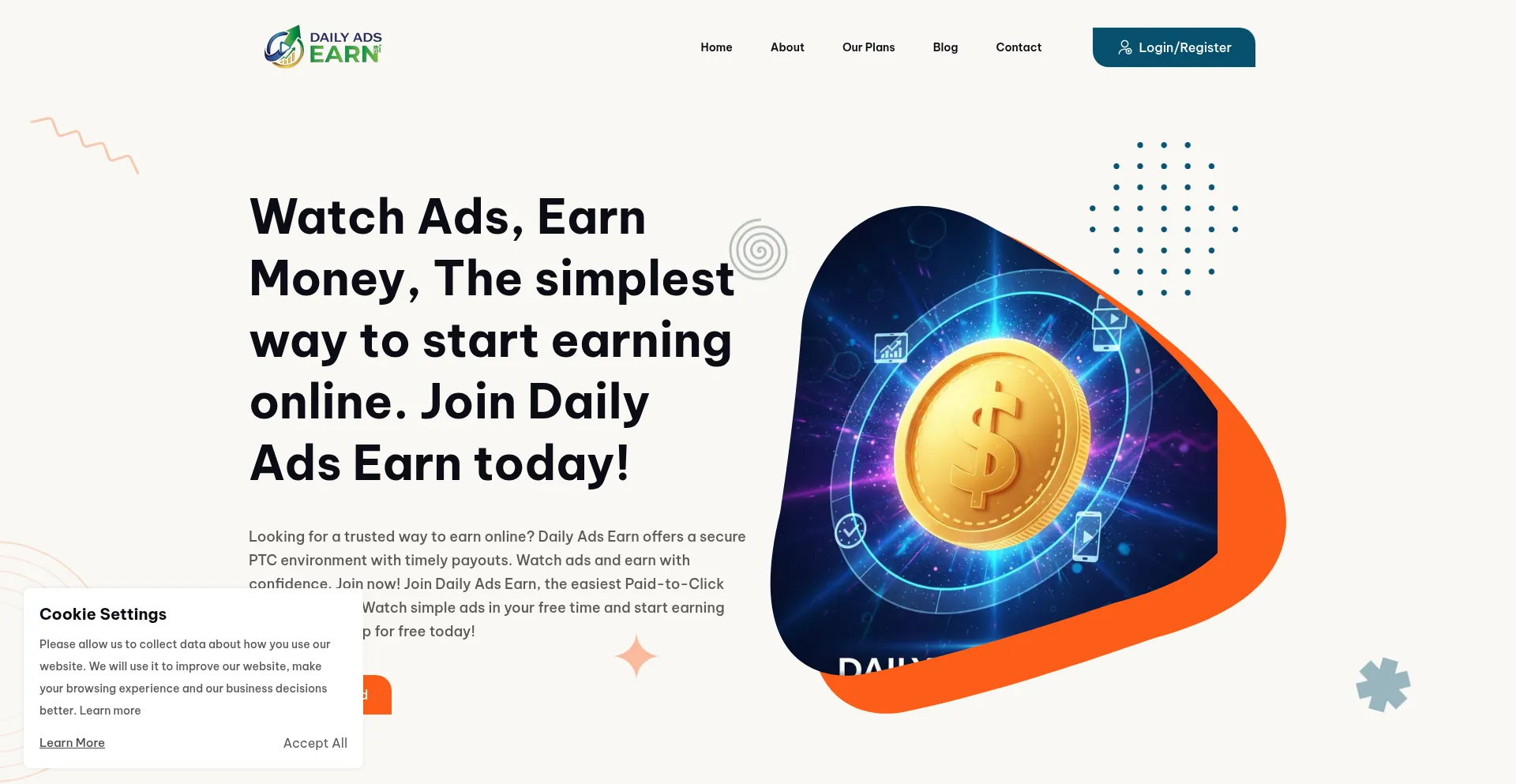 The website implements cookie consent mechanisms in compliance with privacy regulations such as GDPR or CCPA. This demonstrates that dailyadsearn.com adheres to data protection standards and provides users with control over personal data collection practices.