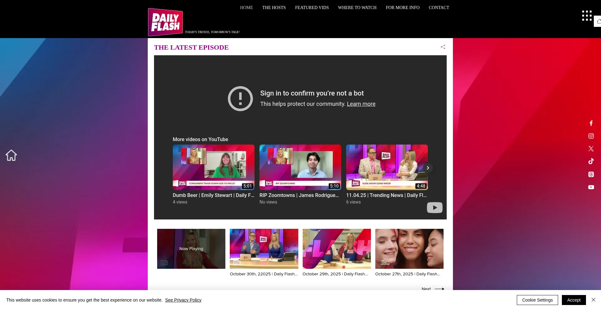 The website implements cookie consent mechanisms in compliance with privacy regulations such as GDPR or CCPA. This demonstrates that dailyflashshow.com adheres to data protection standards and provides users with control over personal data collection practices.