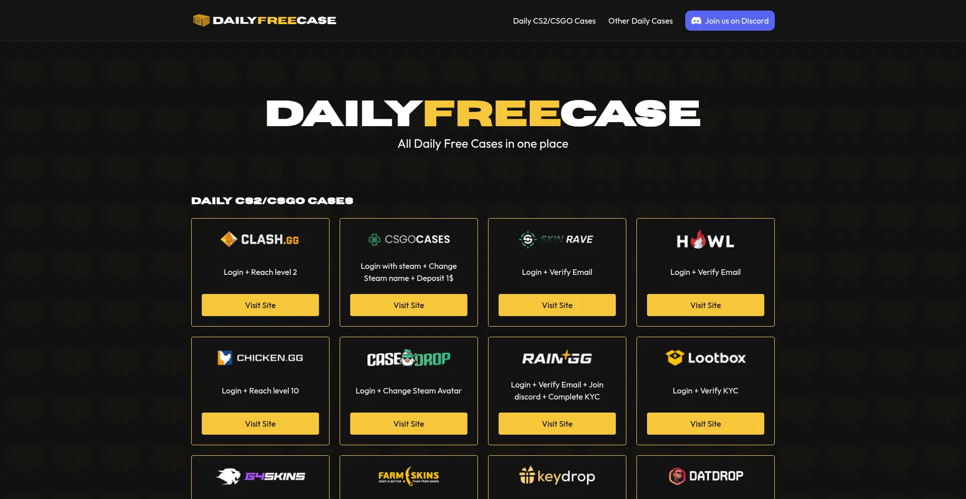 All Daily Free Cases in one place – DailyFreeCase is the ultimate hub for finding free CS2 case offers from trusted sites.