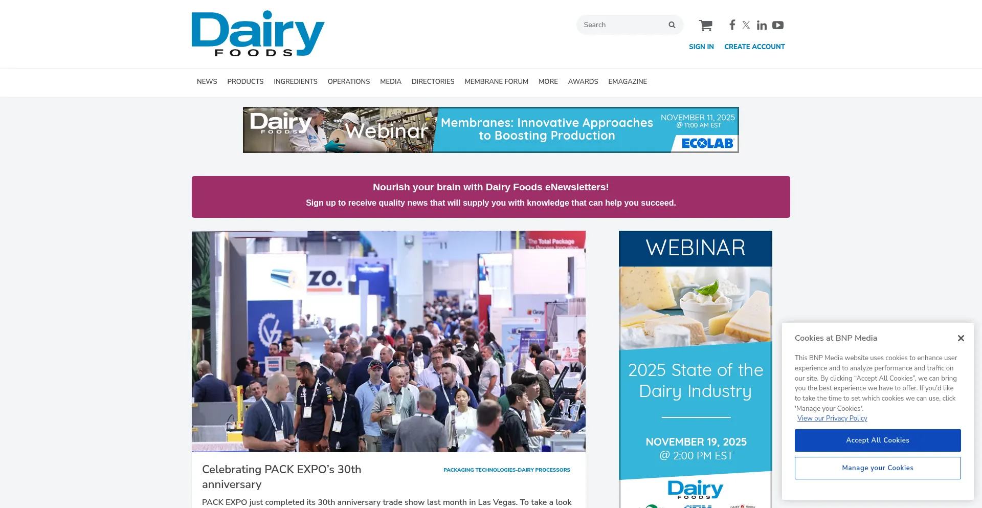 The website implements cookie consent mechanisms in compliance with privacy regulations such as GDPR or CCPA. This demonstrates that dairyfoods.com adheres to data protection standards and provides users with control over personal data collection practices.