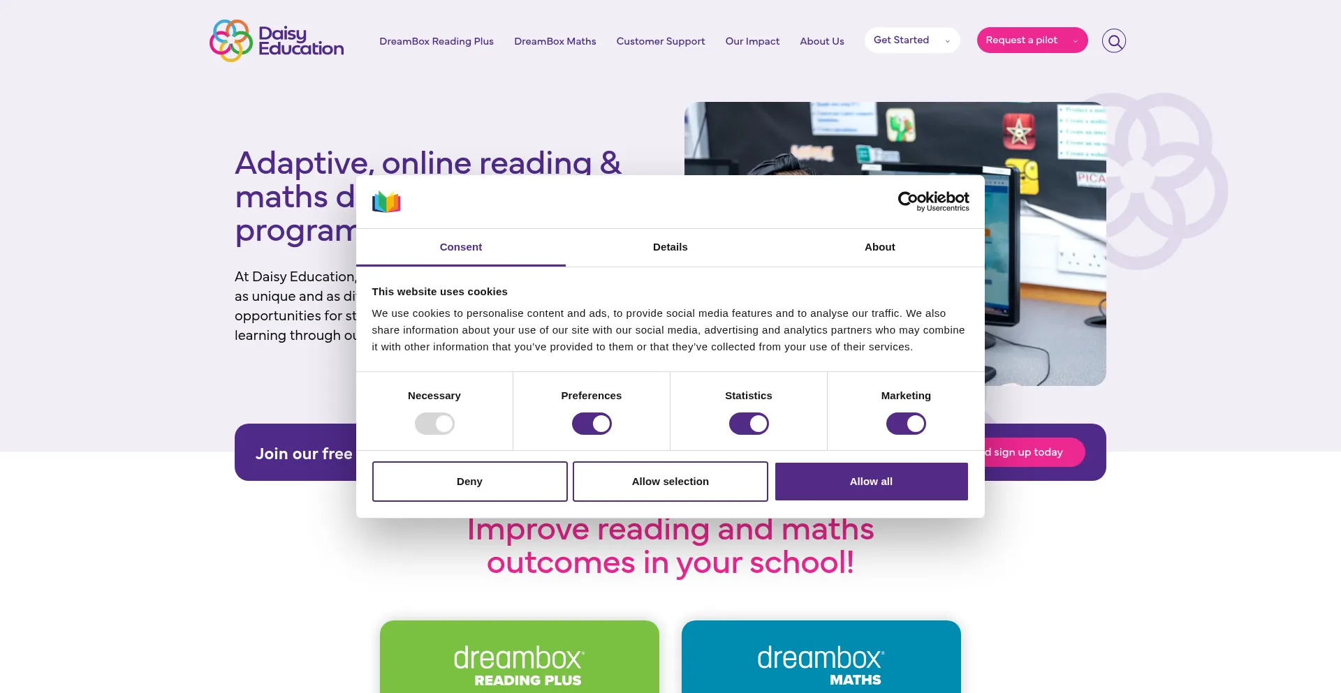 The website implements cookie consent mechanisms in compliance with privacy regulations such as GDPR or CCPA. This demonstrates that daisyeducationuk.com adheres to data protection standards and provides users with control over personal data collection practices.