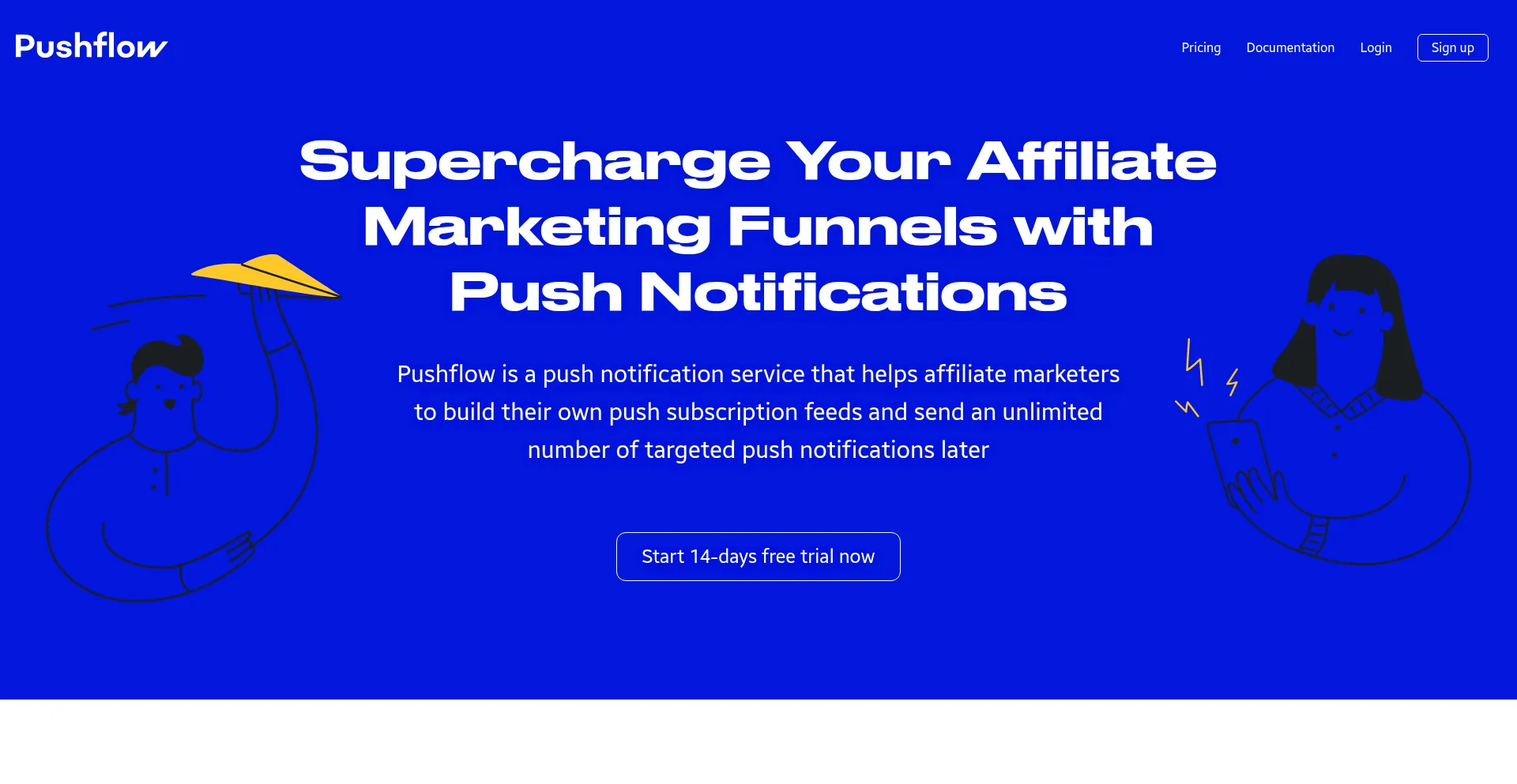 Pushflow helps affiliate marketers to build their own push subscription feeds and send an unlimited number of targeted push notifications