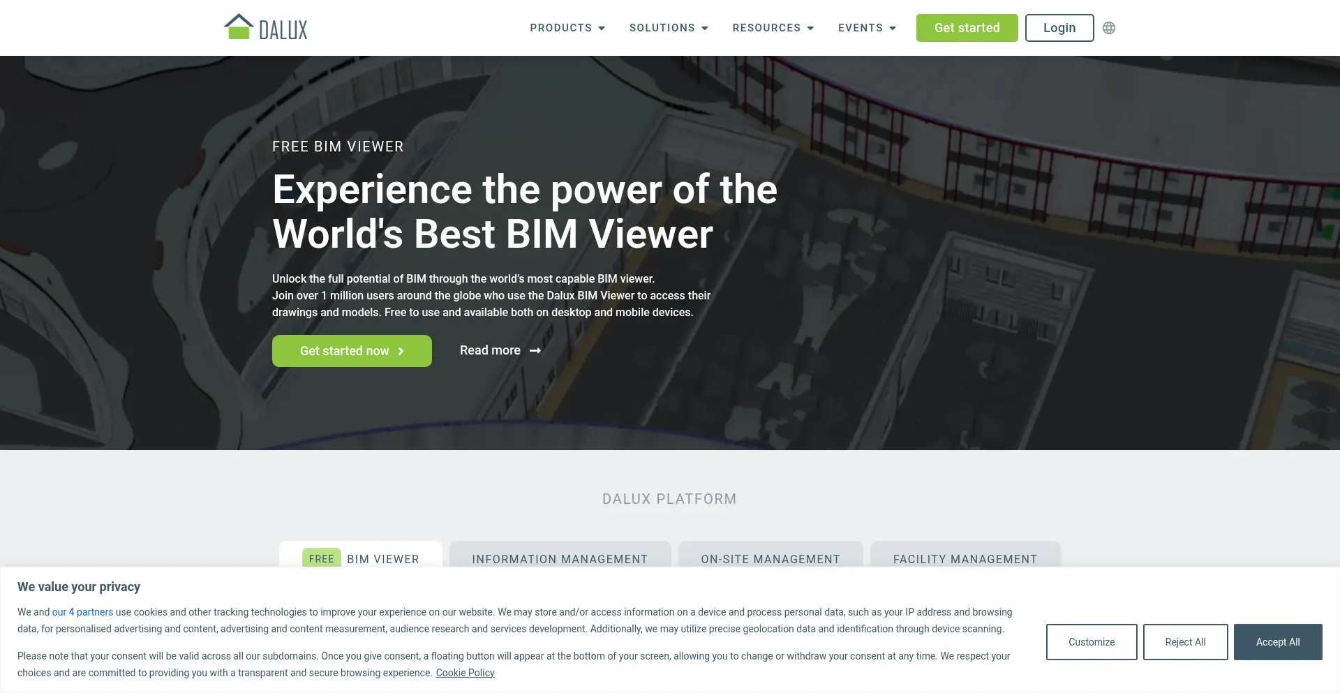 The website implements cookie consent mechanisms in compliance with privacy regulations such as GDPR or CCPA. This demonstrates that dalux.com adheres to data protection standards and provides users with control over personal data collection practices.