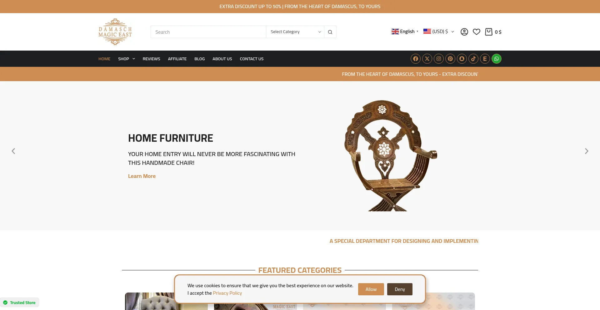 The website implements cookie consent mechanisms in compliance with privacy regulations such as GDPR or CCPA. This demonstrates that damaschmagiceast.com adheres to data protection standards and provides users with control over personal data collection practices.