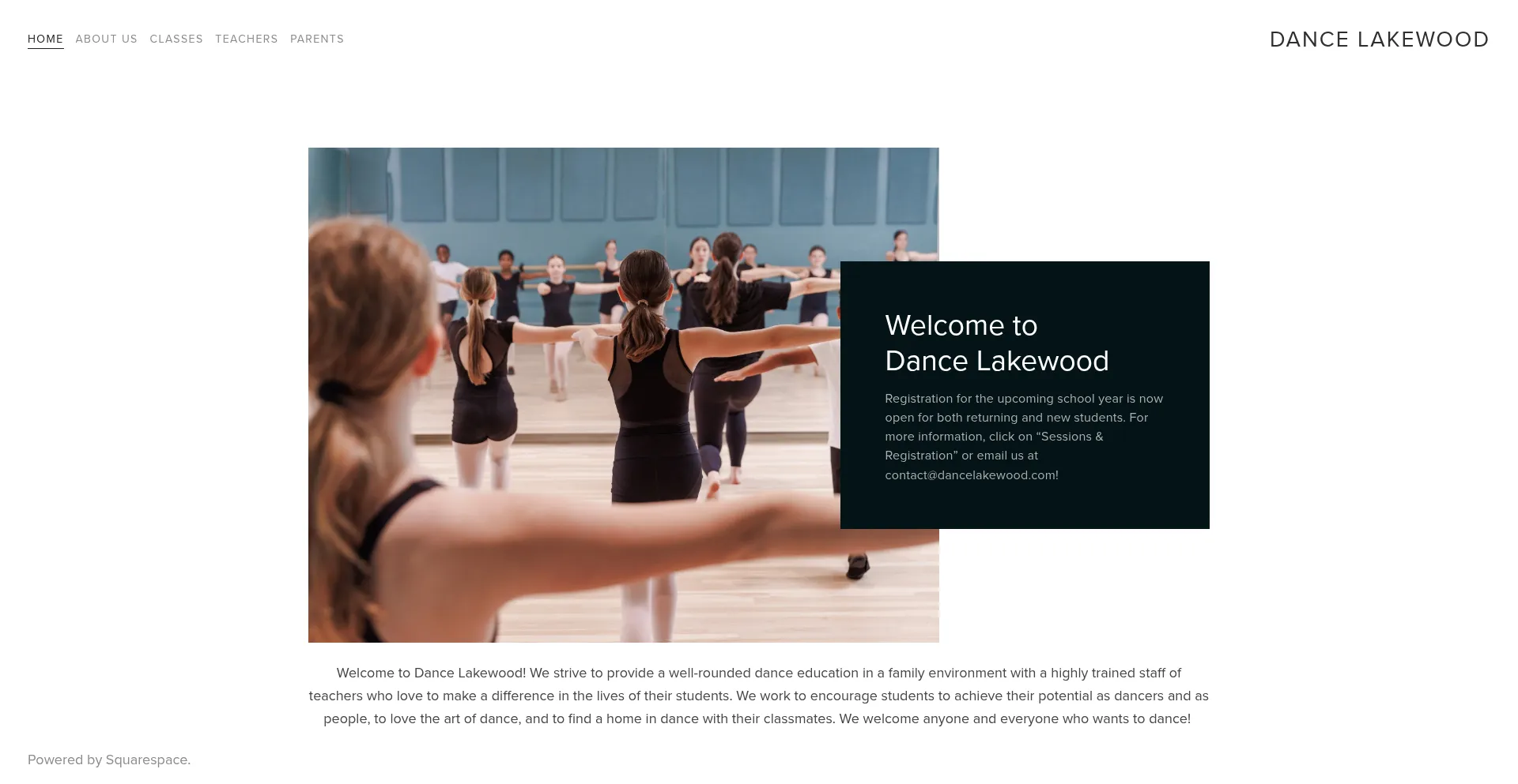 Our analyzer determines that website dancelakewood.com is using Squarespace CMS. Squarespace powers about 2.0% of websites and offers an all-in-one platform for building websites.