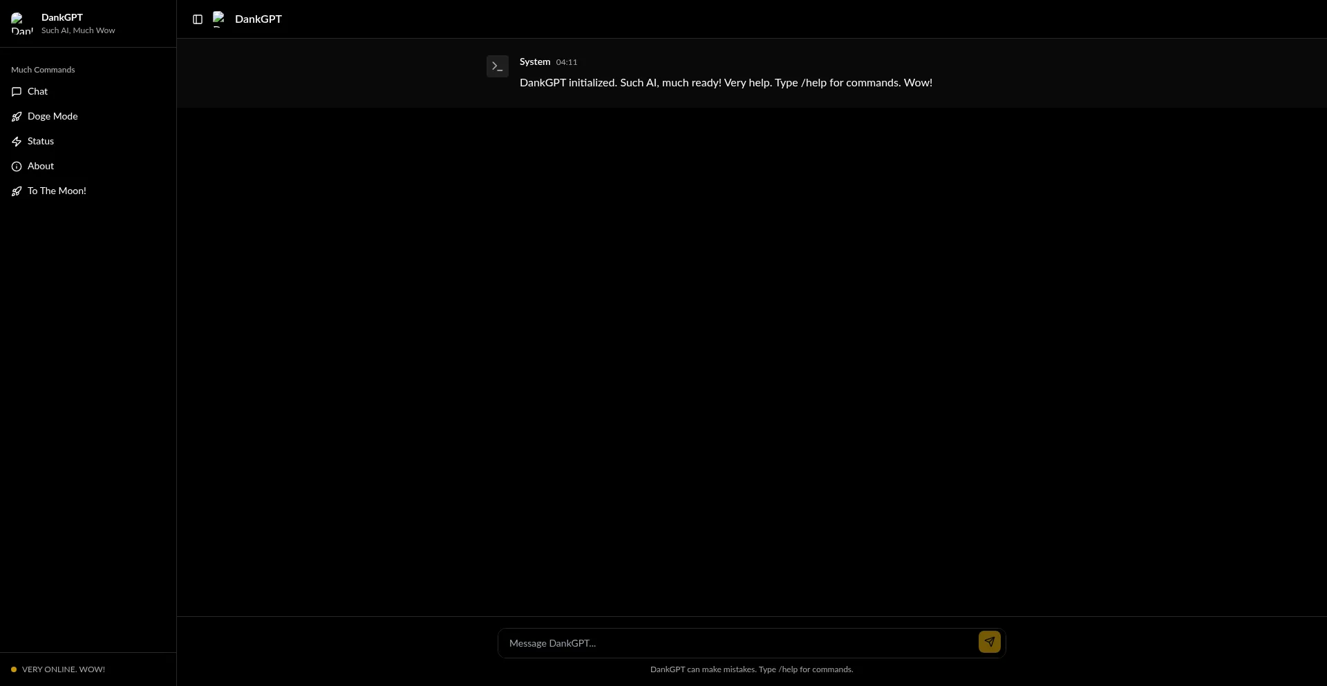 DankGPT - Your doge meme AI assistant. Such smart, much helpful, very wow.