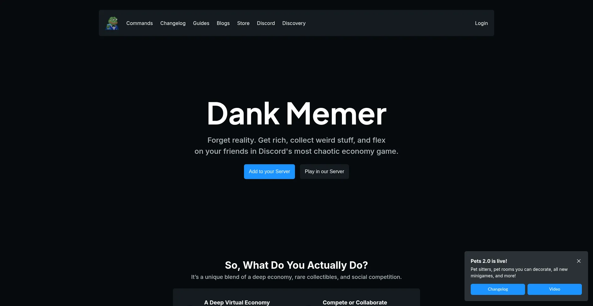 Play Dank Memer, the Discord bot that's a full-fledged economy game. Get money, collect hundreds of items, and trade with friends to build the best collection.
