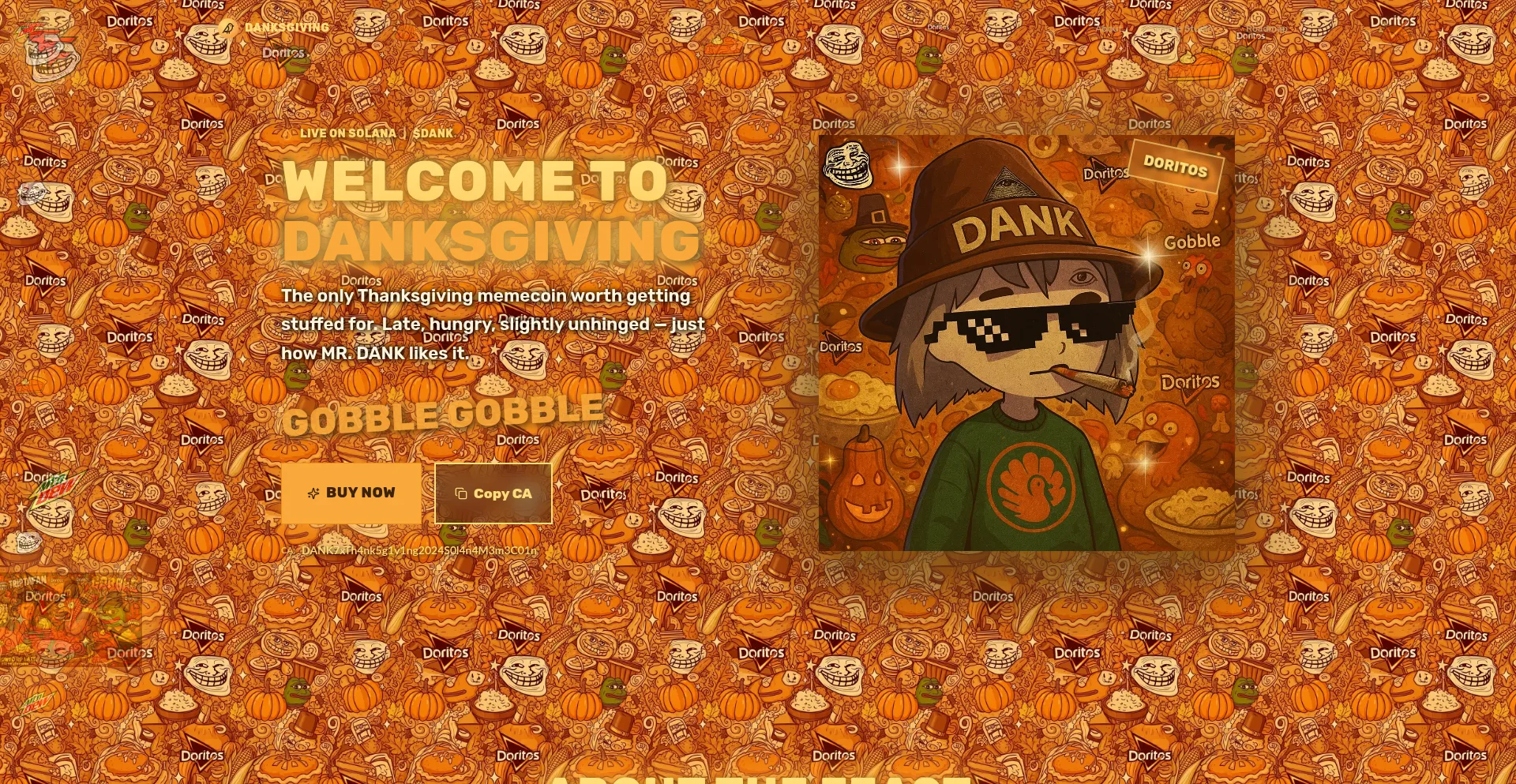DANKSGIVING ($DANK) – the only Thanksgiving memecoin worth getting stuffed for. Create AI-powered memes and custom PFPs.