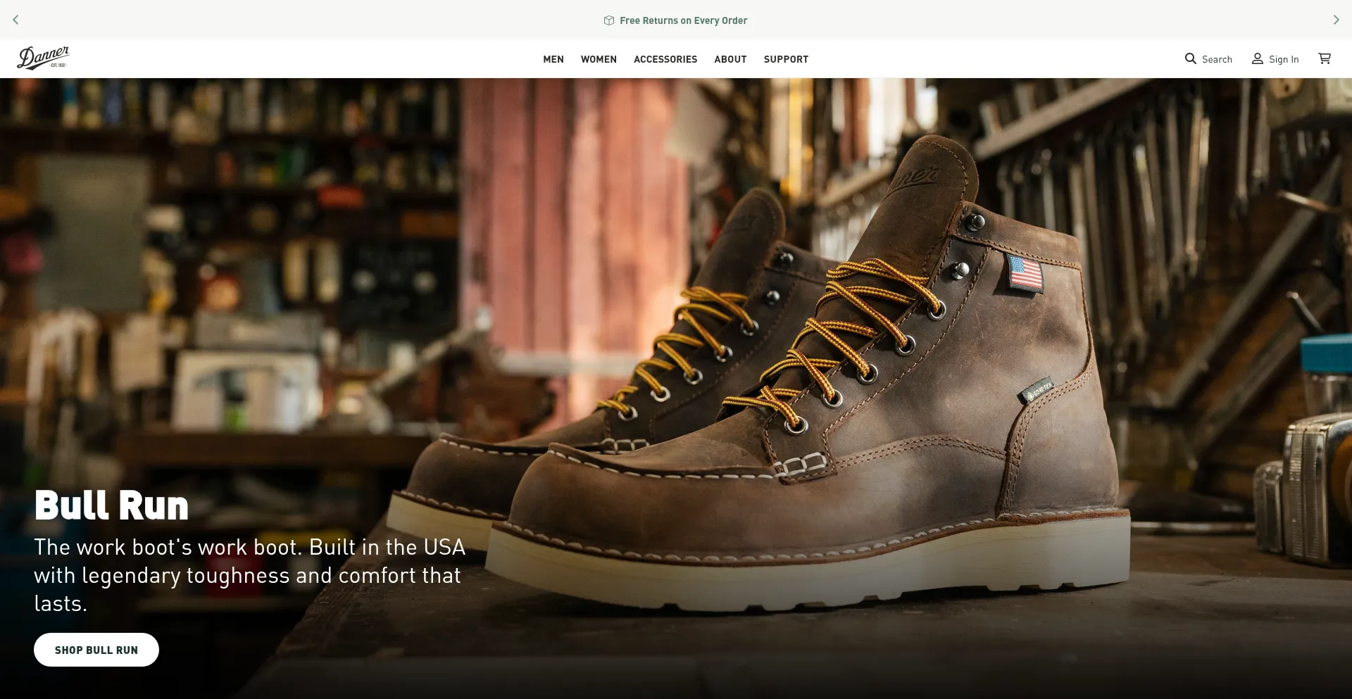 Analysis indicates that danner.com operates as an e-commerce platform facilitating online transactions for goods or services. The website implements shopping cart functionality, payment processing systems, and product catalog features typical of commercial retail operations.