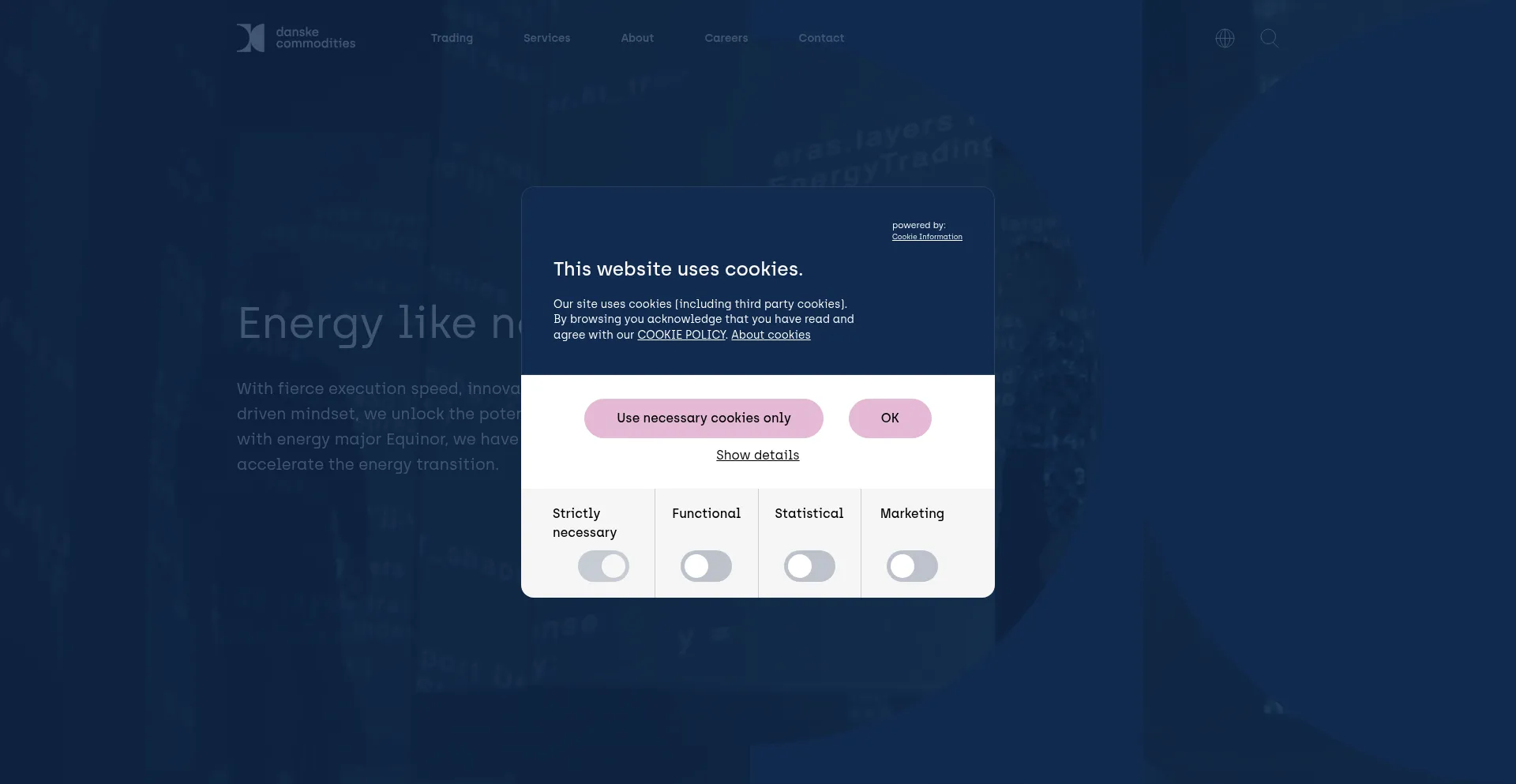 The website implements cookie consent mechanisms in compliance with privacy regulations such as GDPR or CCPA. This demonstrates that danskecommodities.com adheres to data protection standards and provides users with control over personal data collection practices.