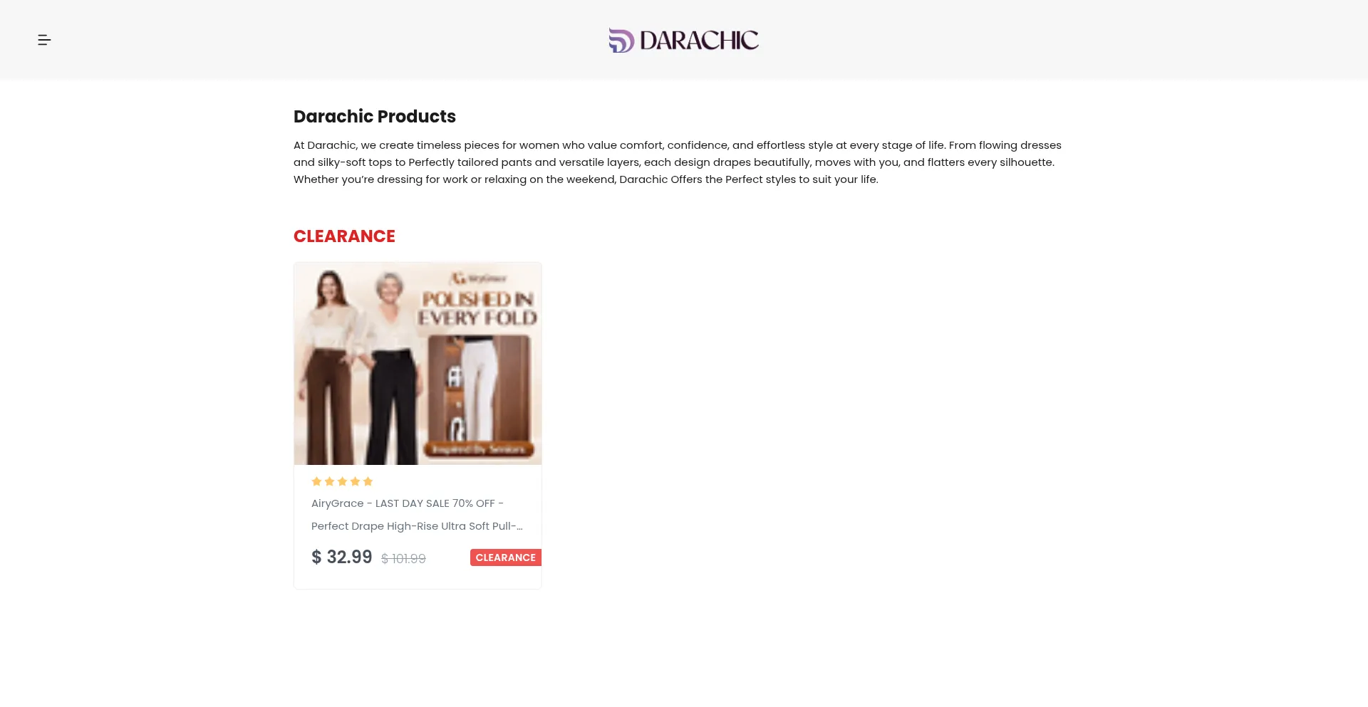 At Darachic, we create timeless pieces for women who value comfort, confidence, and effortless style at every stage of life. From flowing dresses and silky-soft tops to Perfectl...