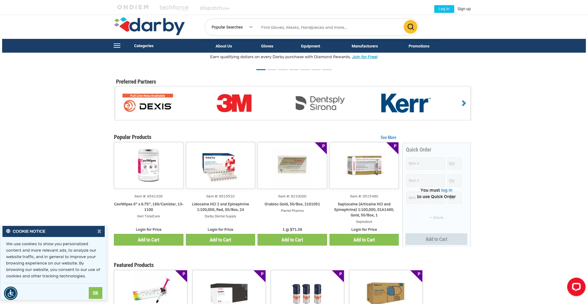 Analysis indicates that darbydental.com operates as an e-commerce platform facilitating online transactions for goods or services. The website implements shopping cart functionality, payment processing systems, and product catalog features typical of commercial retail operations.